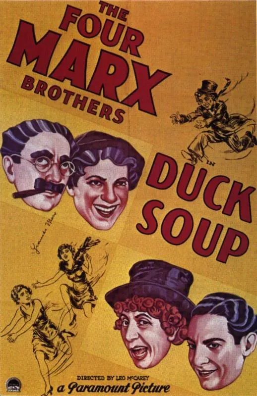 The classic comedians The Marx Brothers developed a style of physical comedy with origins deeply rooted in commedia dell’arte. In Duck Soup, often considered one of their funniest and most popular films, the influence of the slap-stick comedy takes over as two spies try to overthrow the new dictator of the mythical land of Freedonia after he insults the citizens living there. With their signature wacky and satirical tone, this proves to be one of the Brothers best films.
