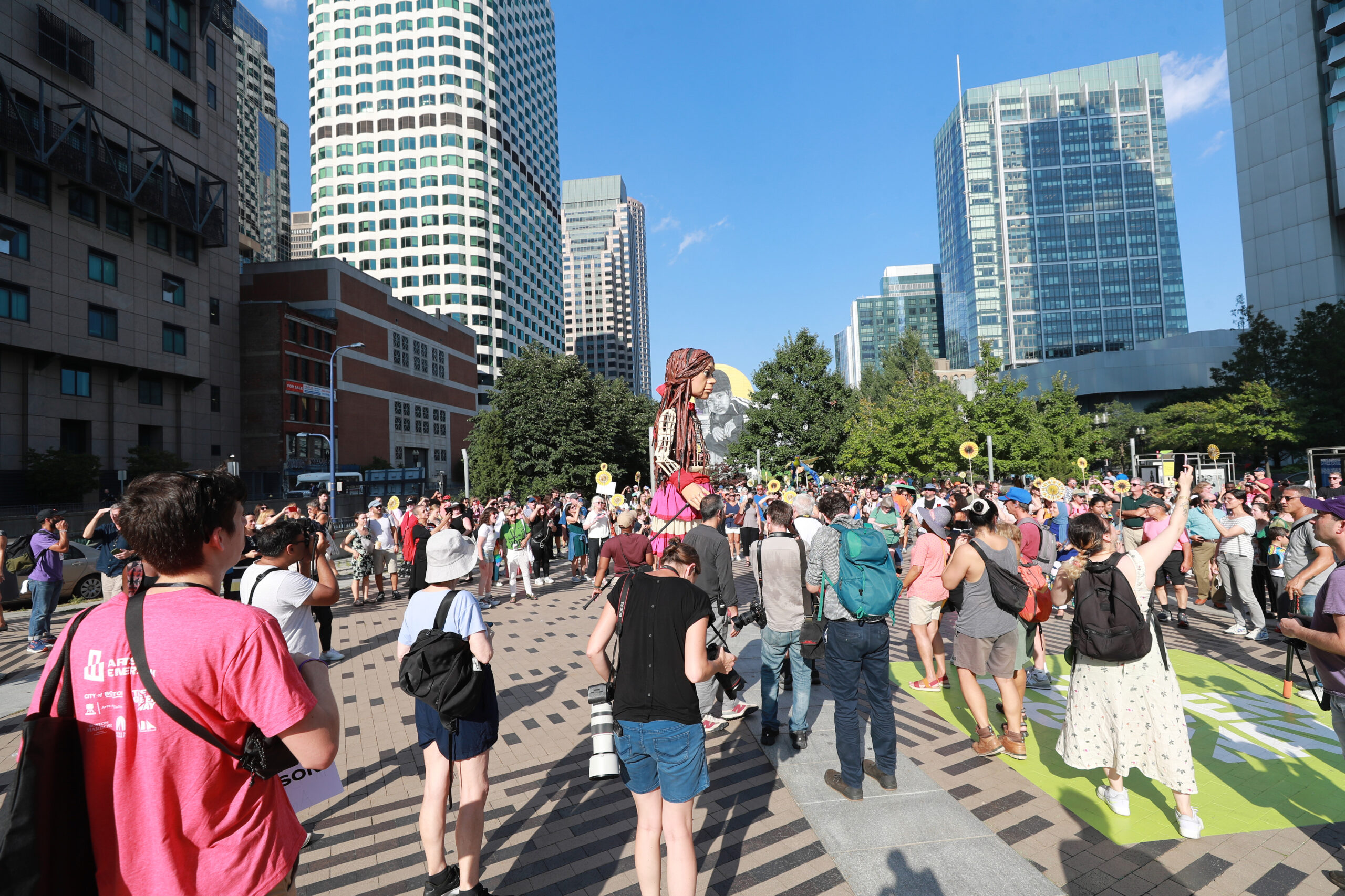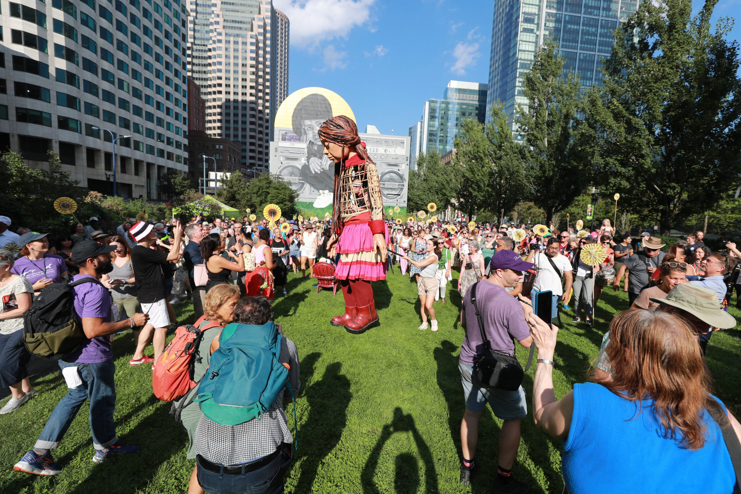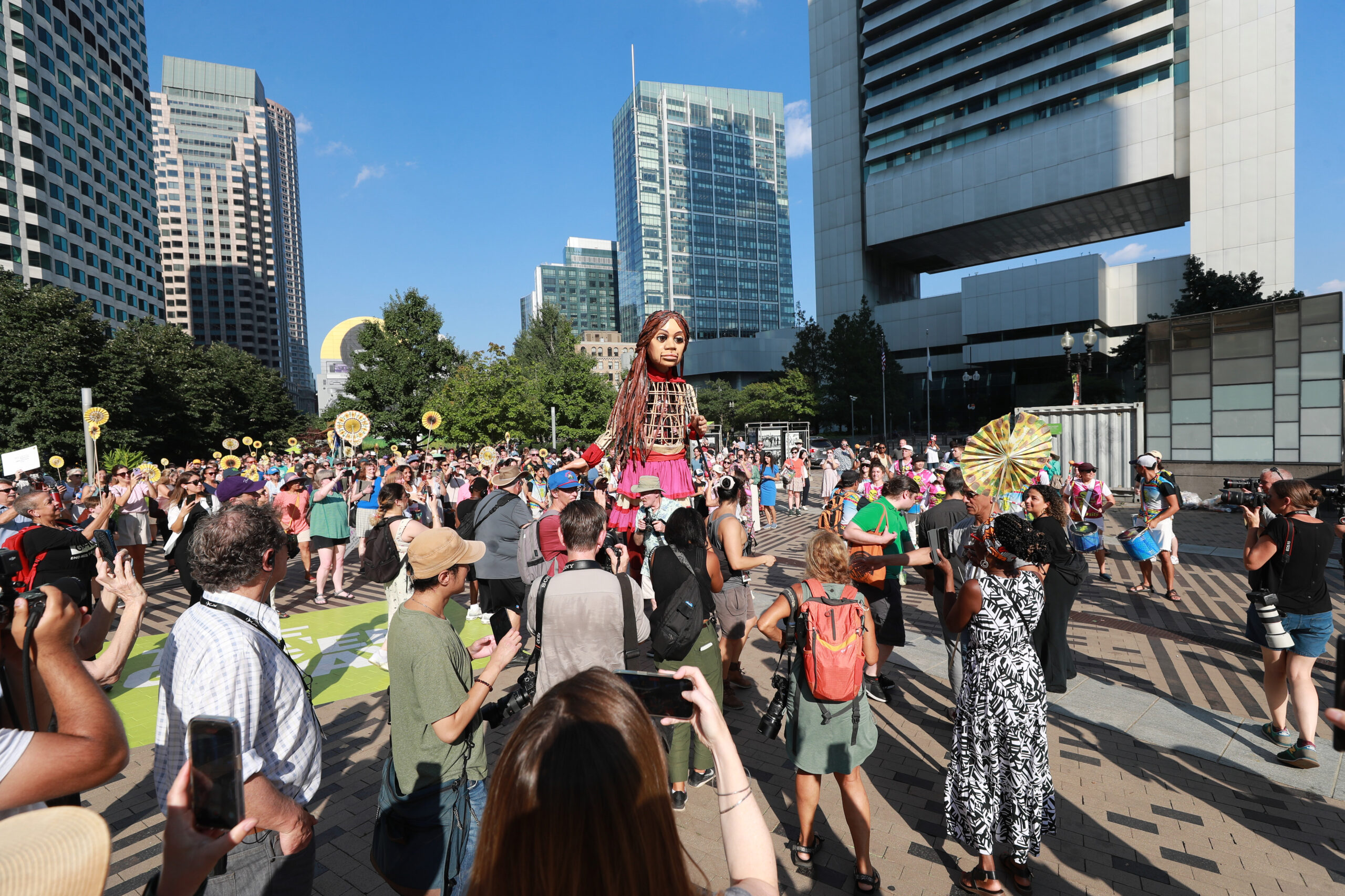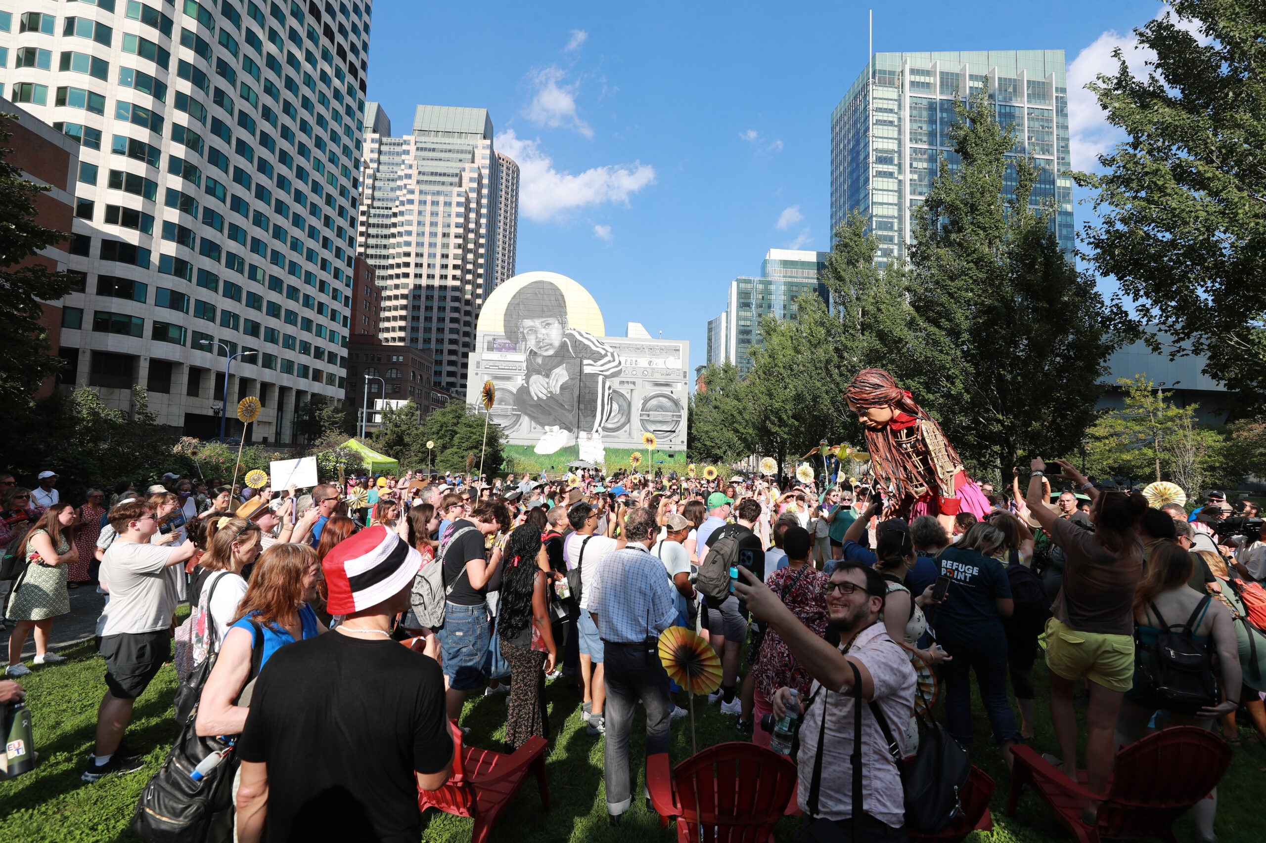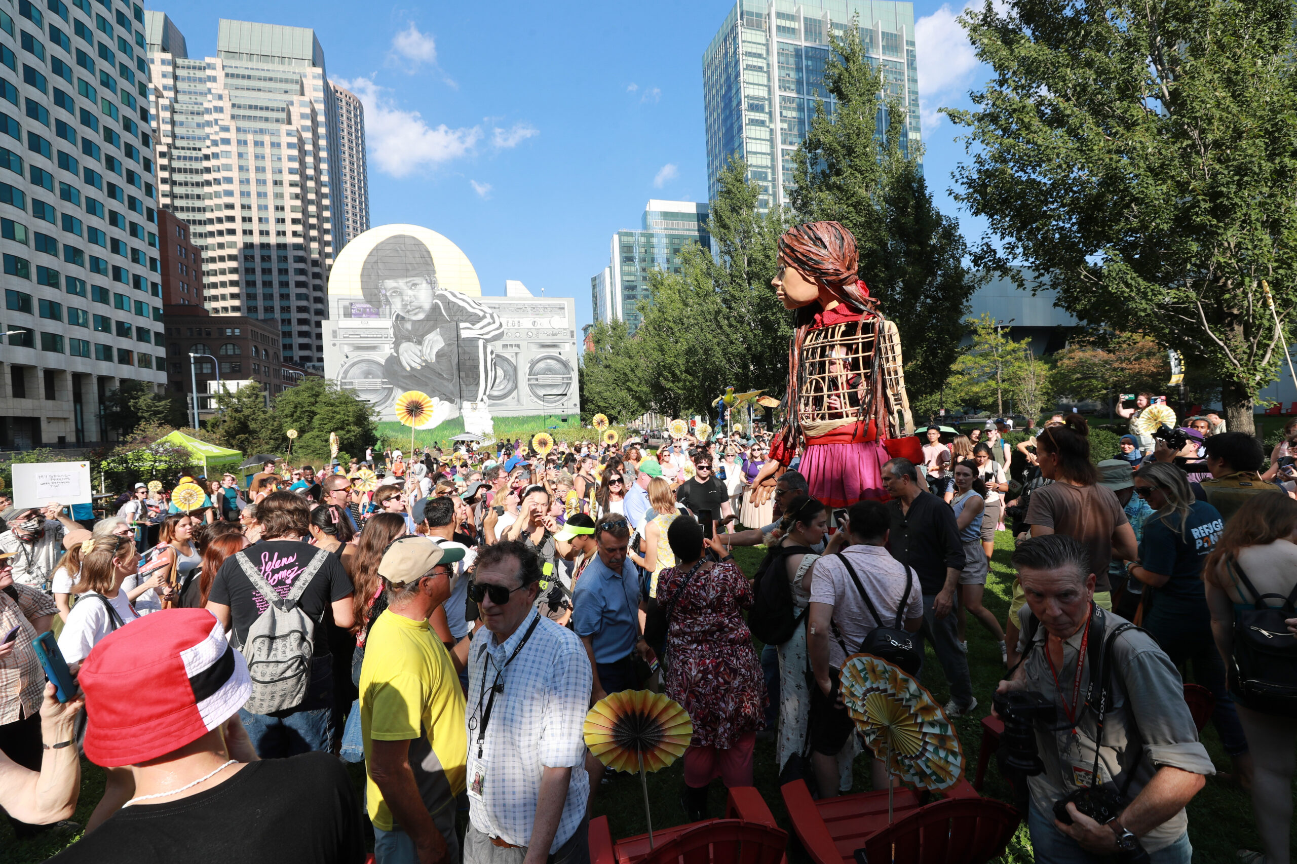 Here is our photo gallery from our event with Little Amal, which took place on September 7 across Rowes Wharf, Dewey Square, and Chinatown. Little Amal is the 12-foot-tall puppet of a 10-year-old Syrian refugee girl. She has been walking across the world to raise awareness for refugees.