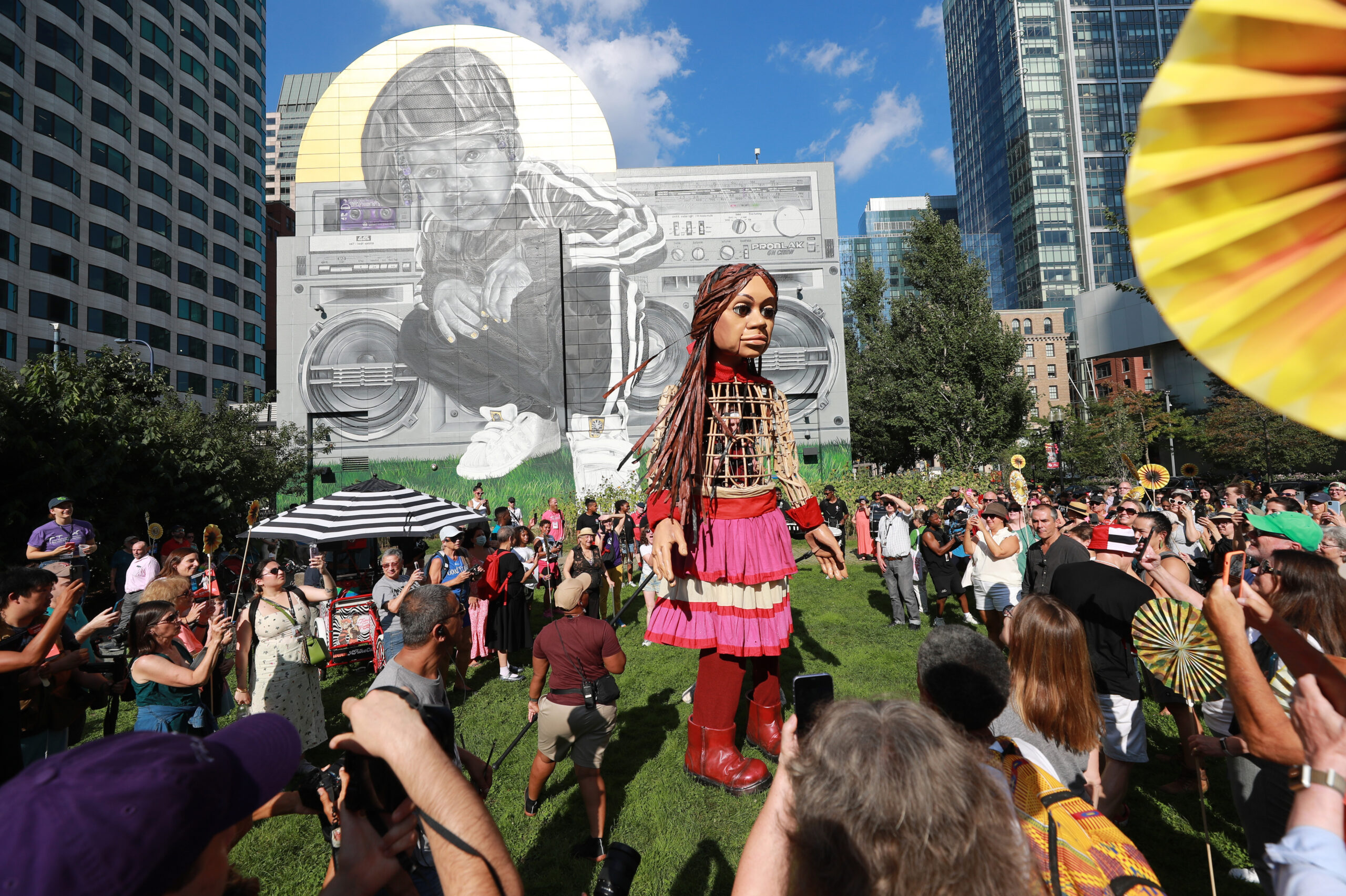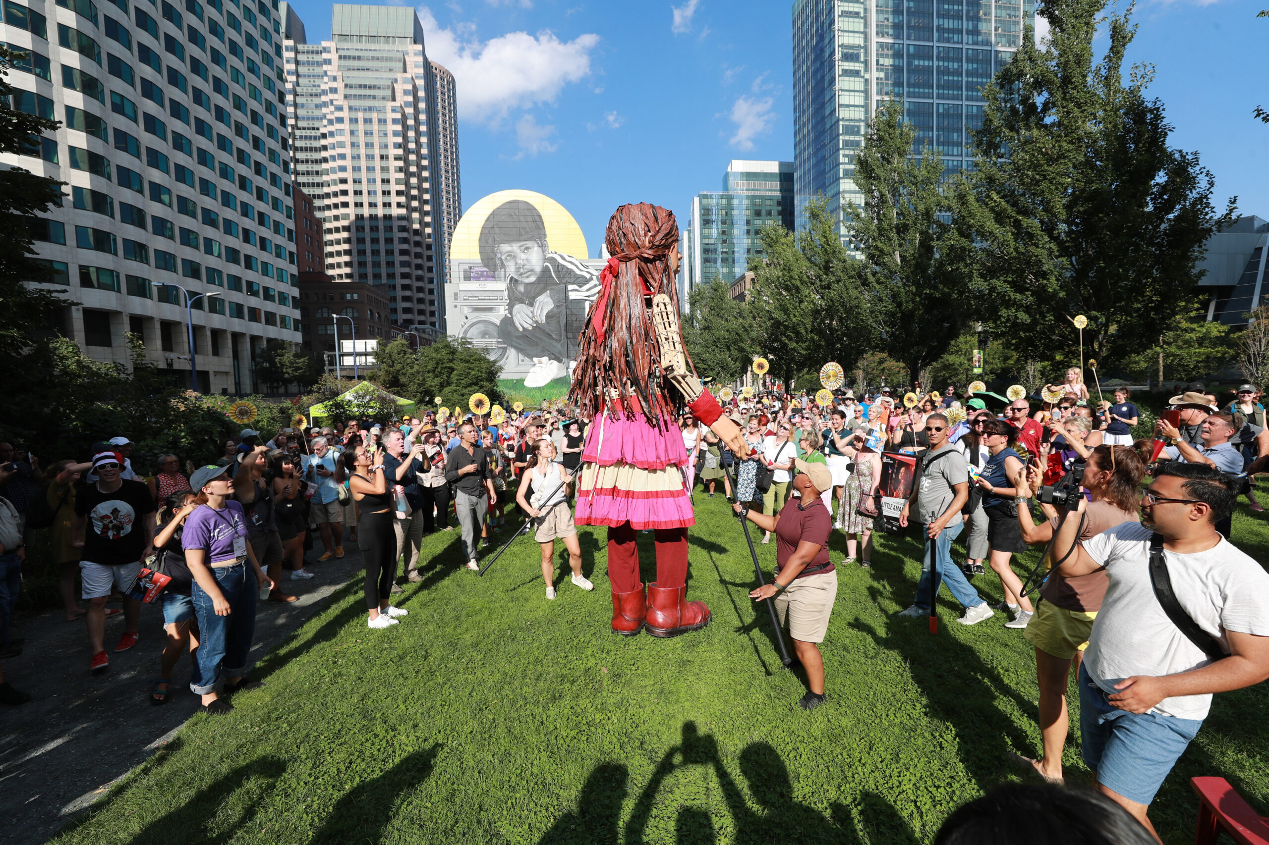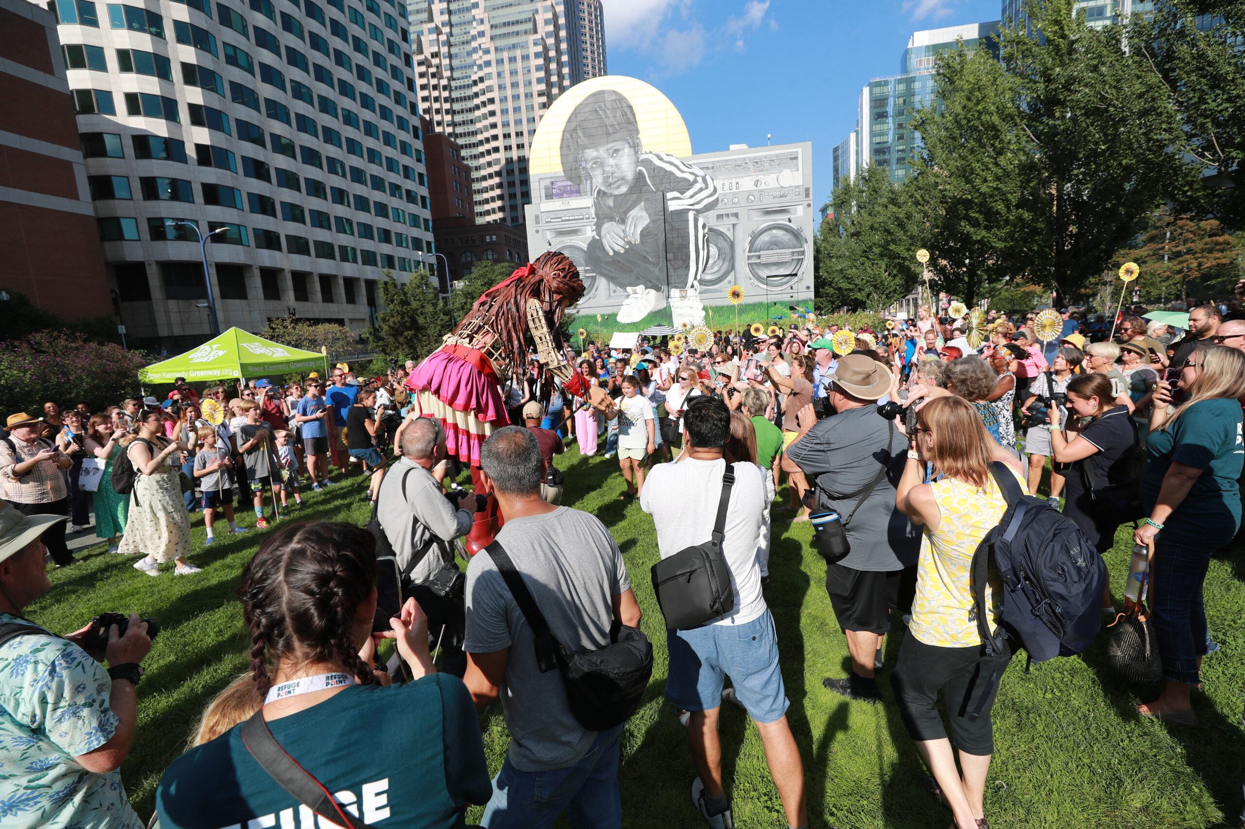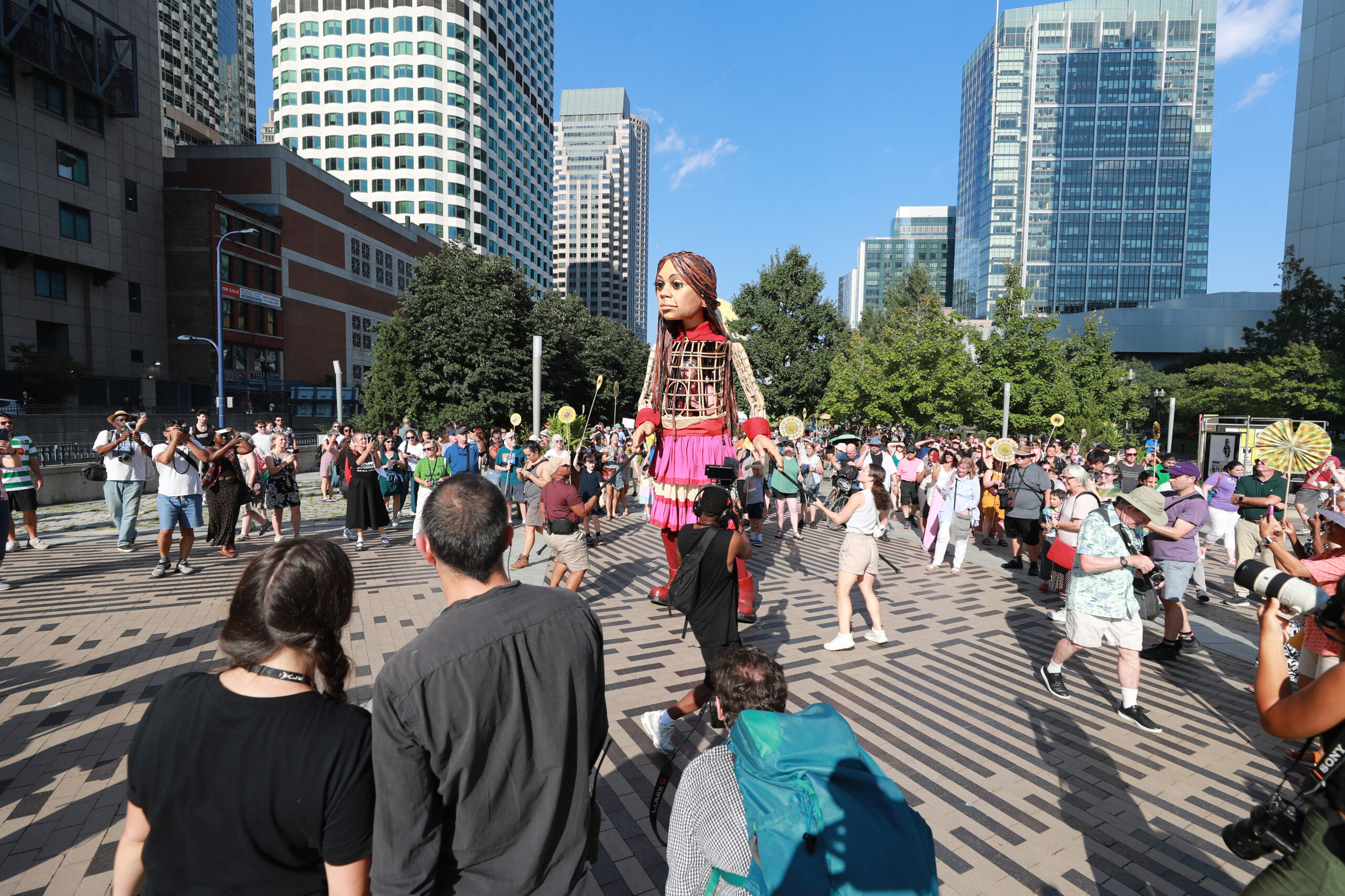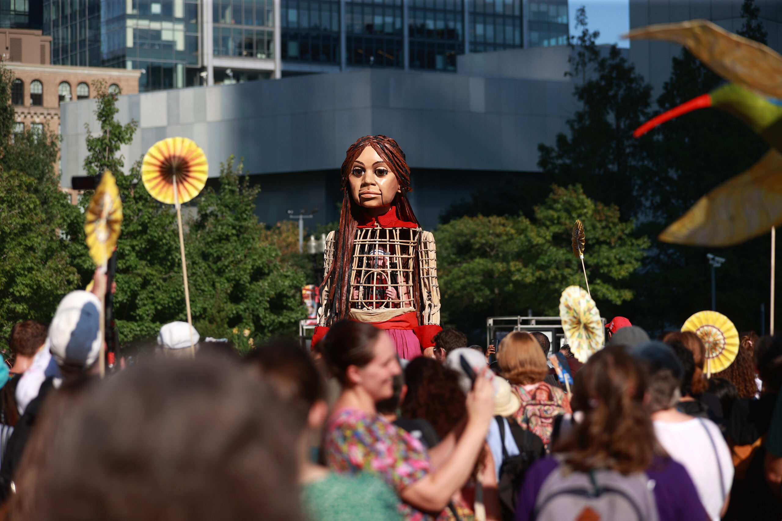 Here is our photo gallery from our event with Little Amal, which took place on September 7 across Rowes Wharf, Dewey Square, and Chinatown. Little Amal is the 12-foot-tall puppet of a 10-year-old Syrian refugee girl. She has been walking across the world to raise awareness for refugees.