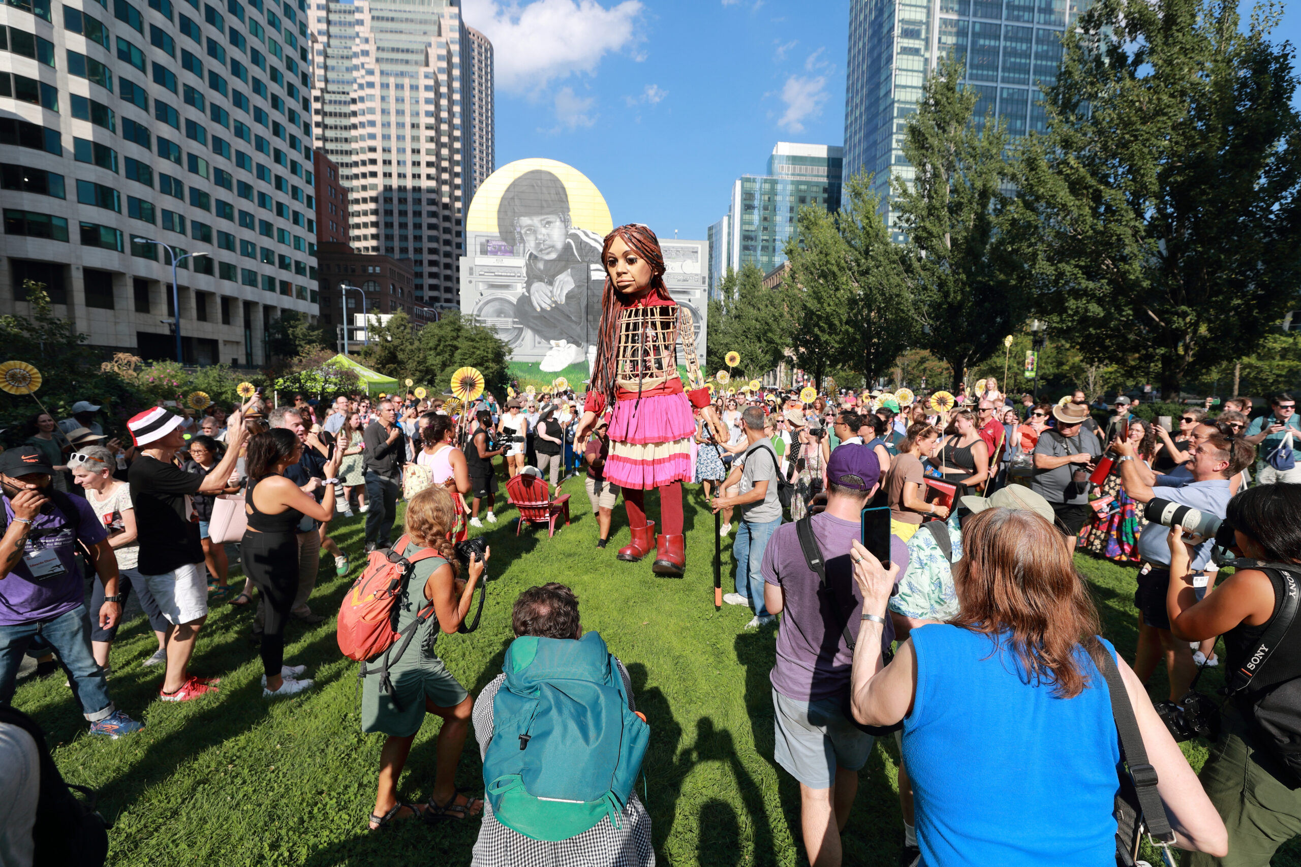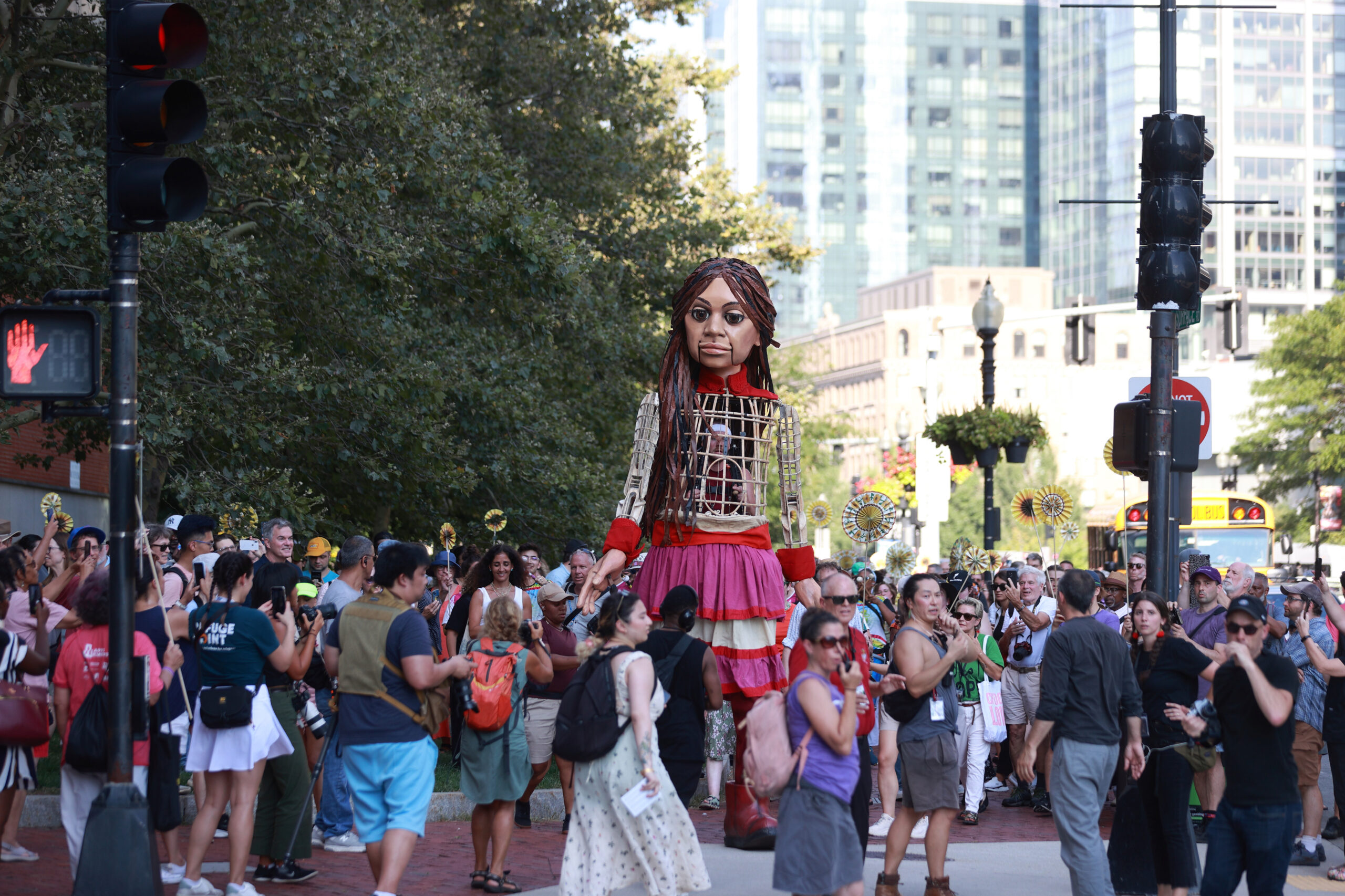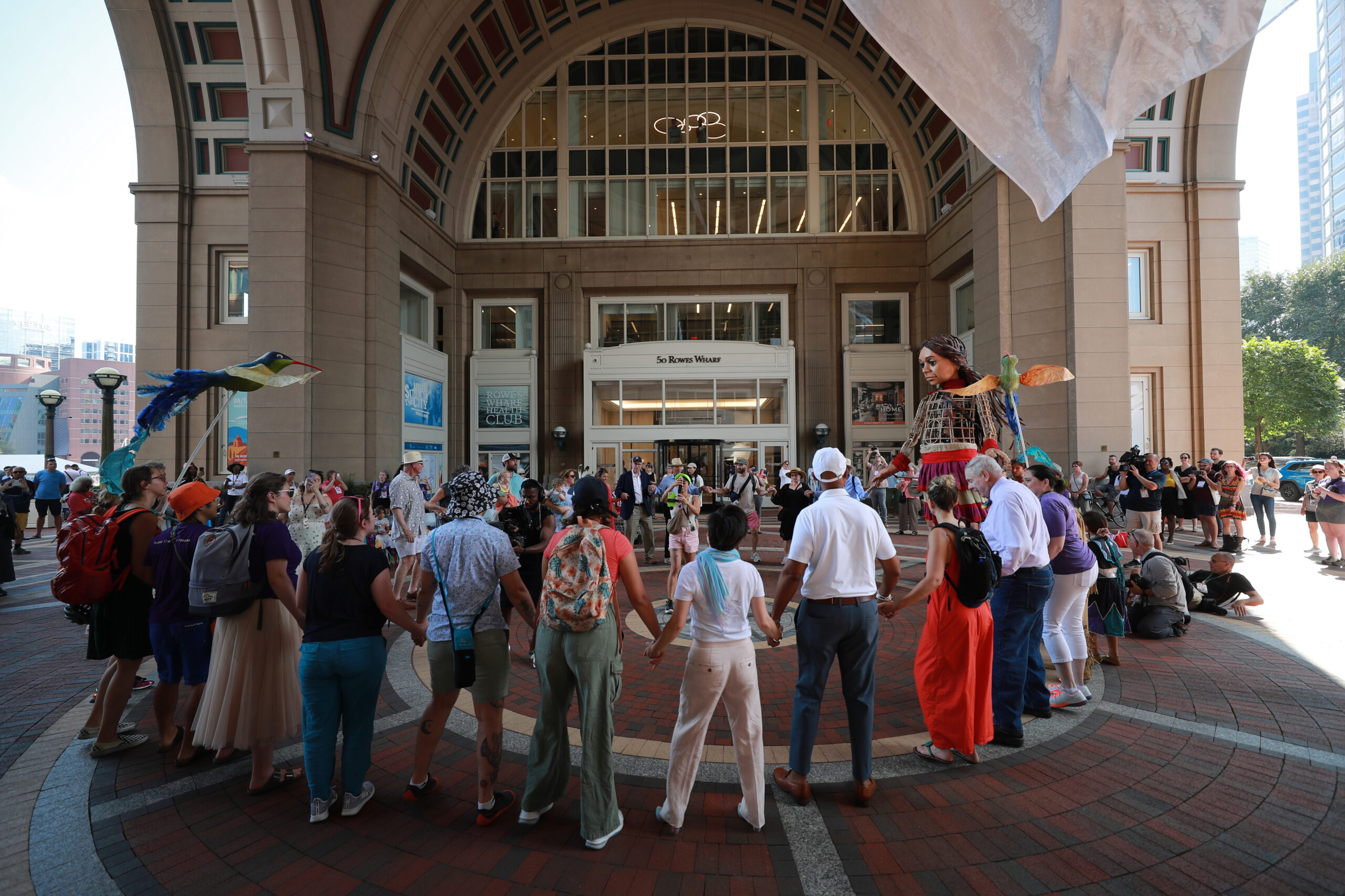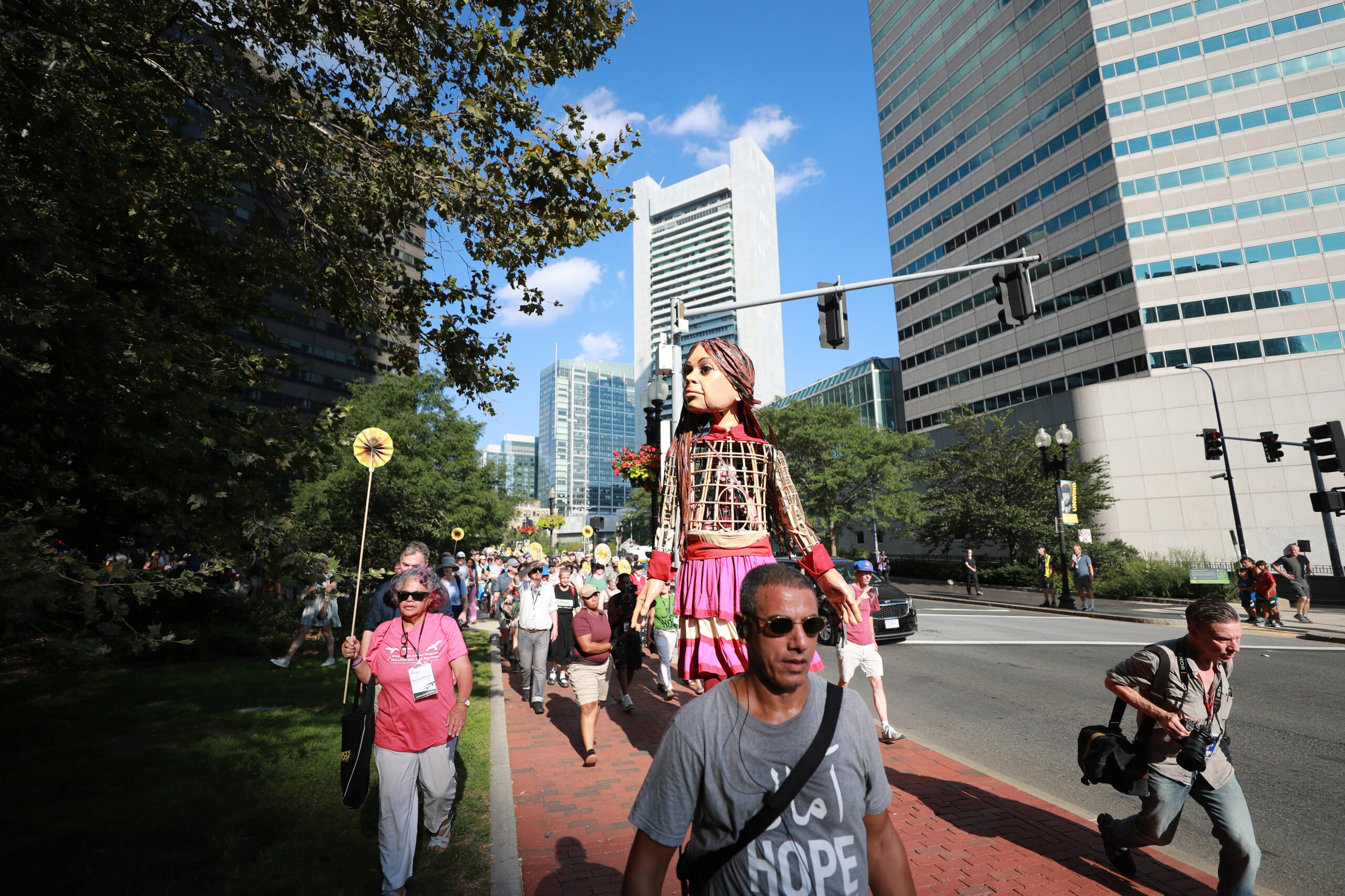 Here is our photo gallery from our event with Little Amal, which took place on September 7 across Rowes Wharf, Dewey Square, and Chinatown. Little Amal is the 12-foot-tall puppet of a 10-year-old Syrian refugee girl. She has been walking across the world to raise awareness for refugees.