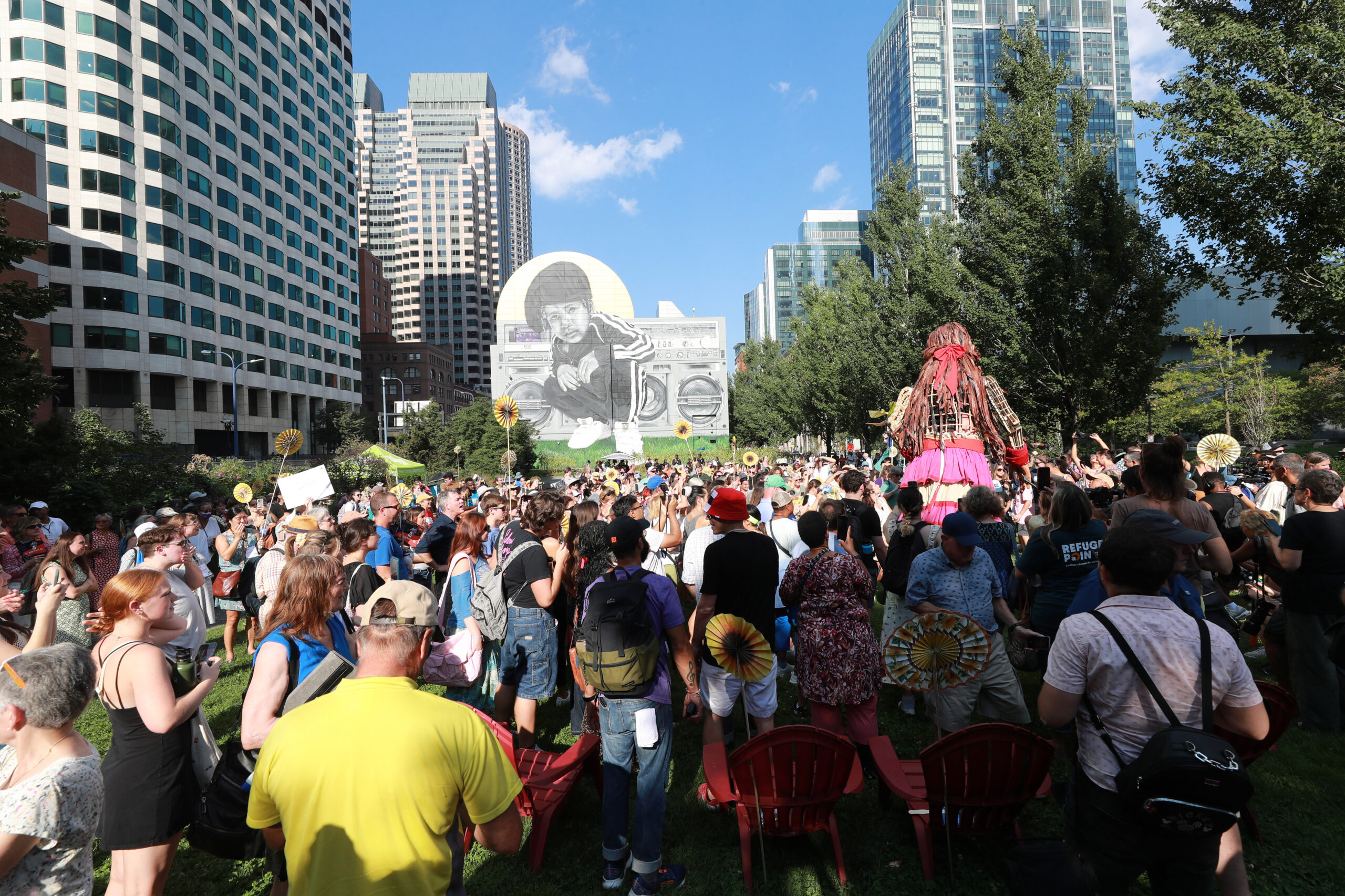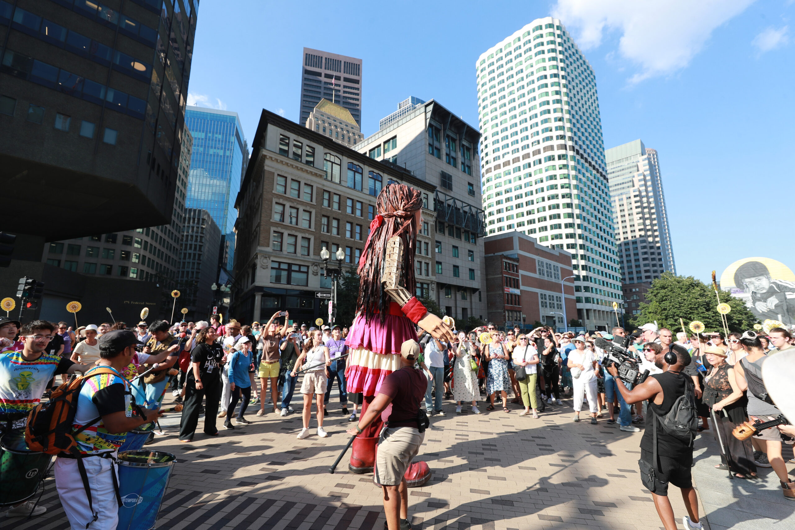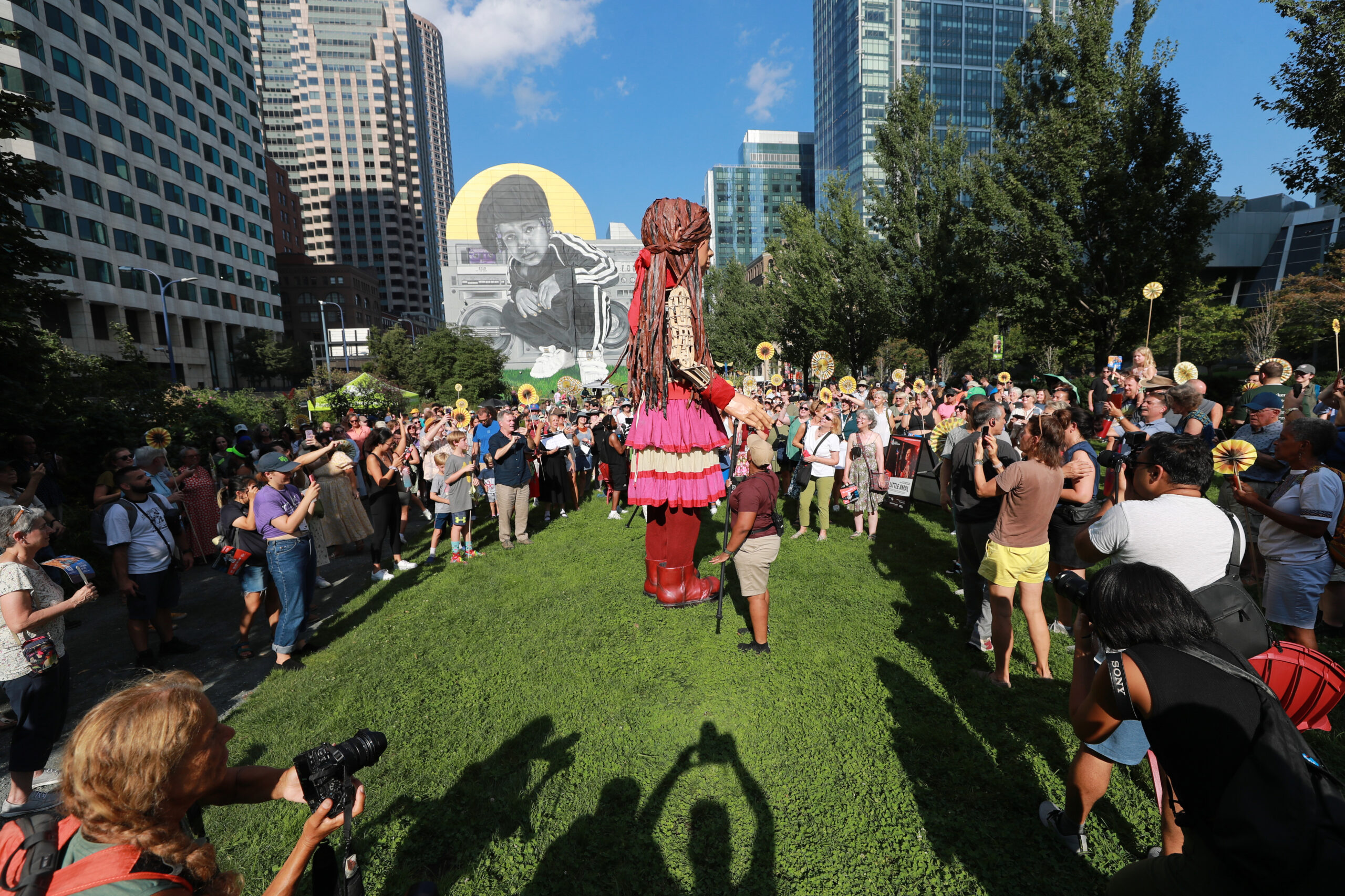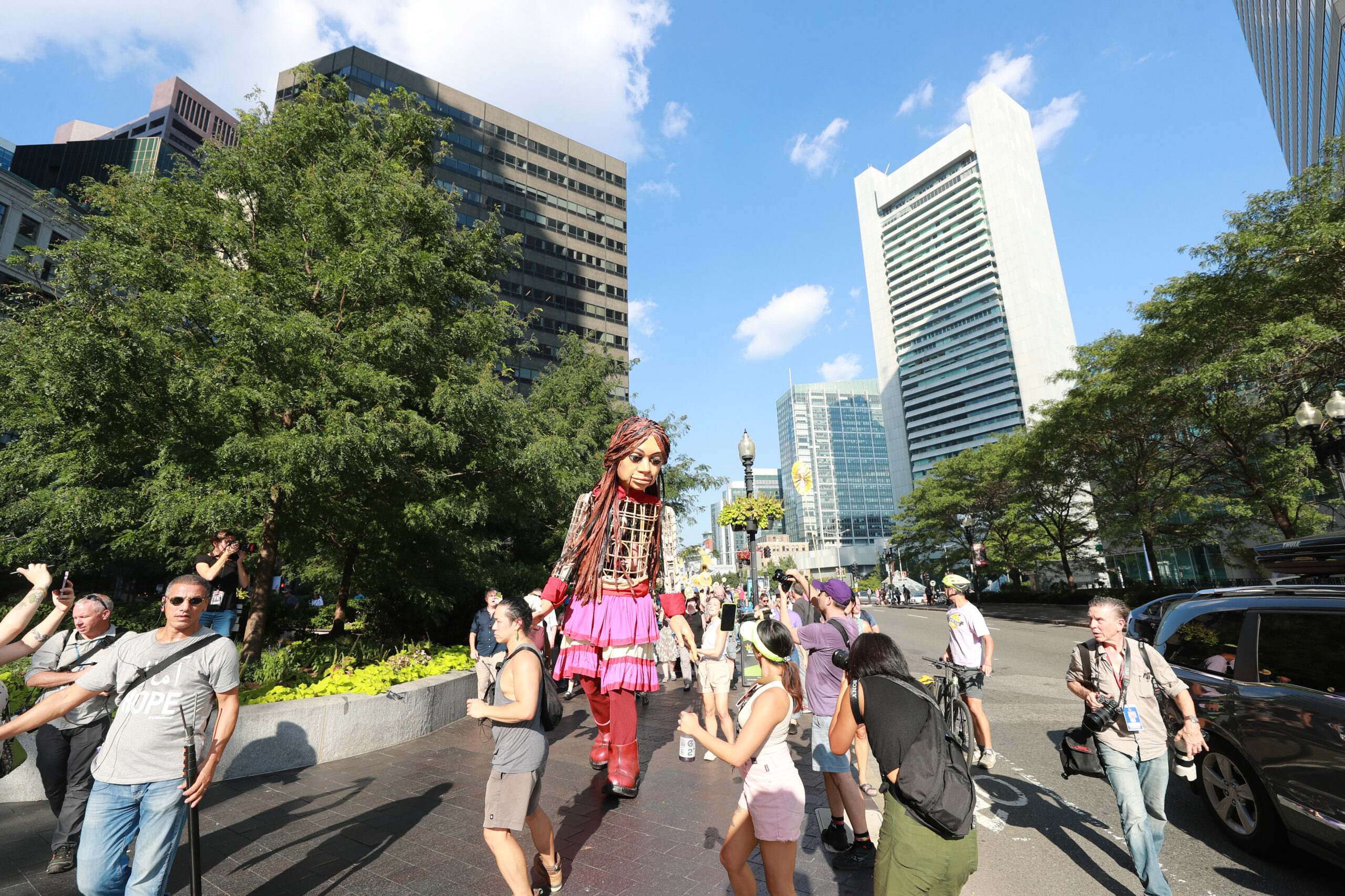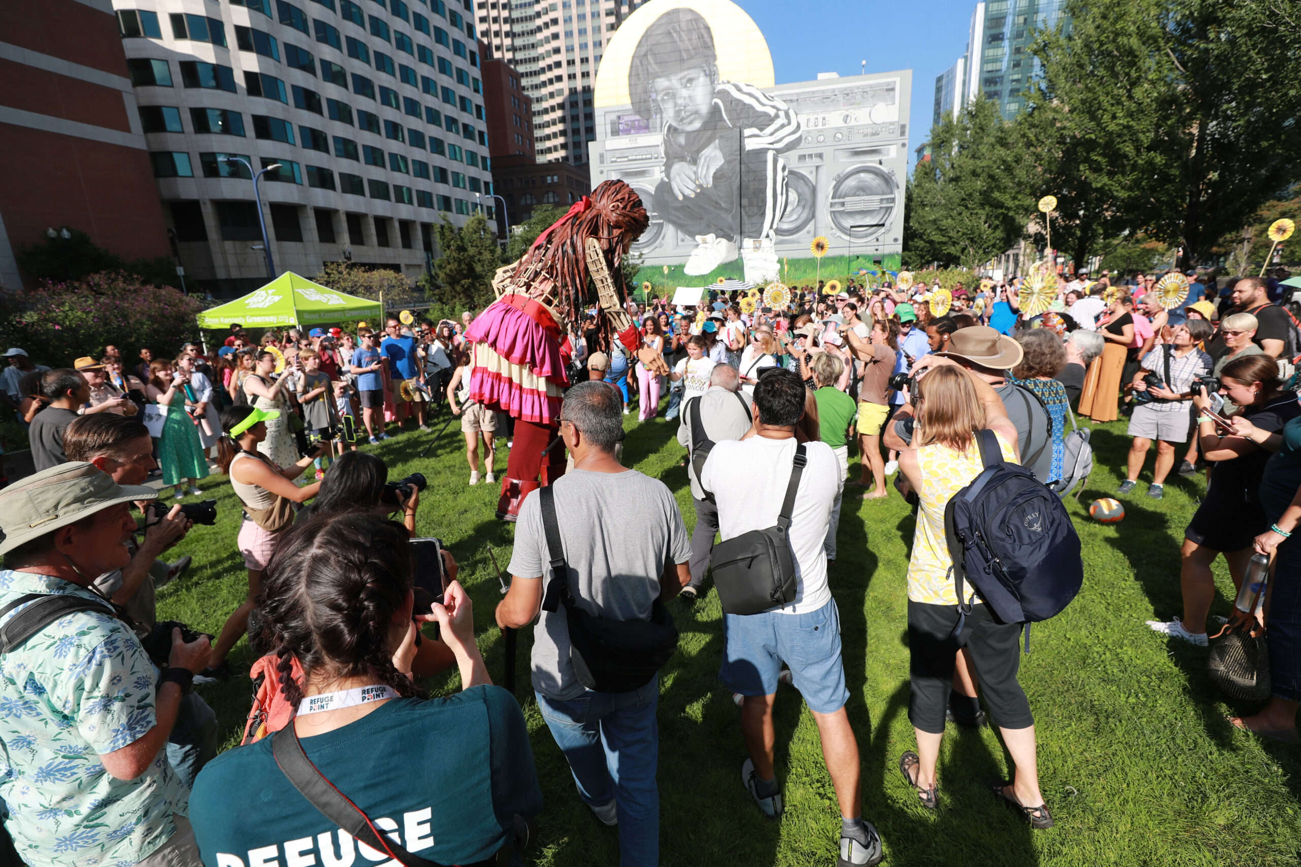 Here is our photo gallery from our event with Little Amal, which took place on September 7 across Rowes Wharf, Dewey Square, and Chinatown. Little Amal is the 12-foot-tall puppet of a 10-year-old Syrian refugee girl. She has been walking across the world to raise awareness for refugees.