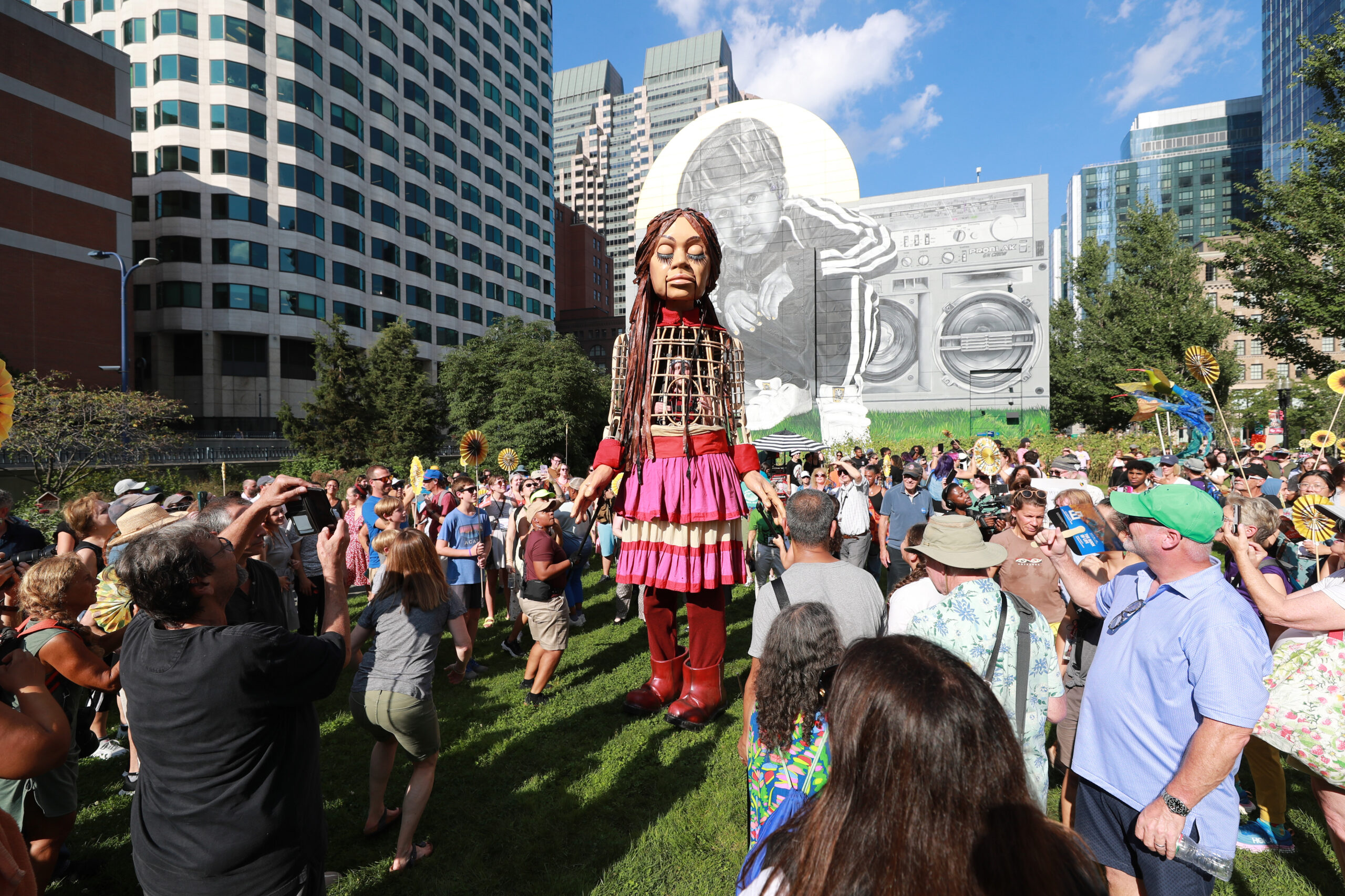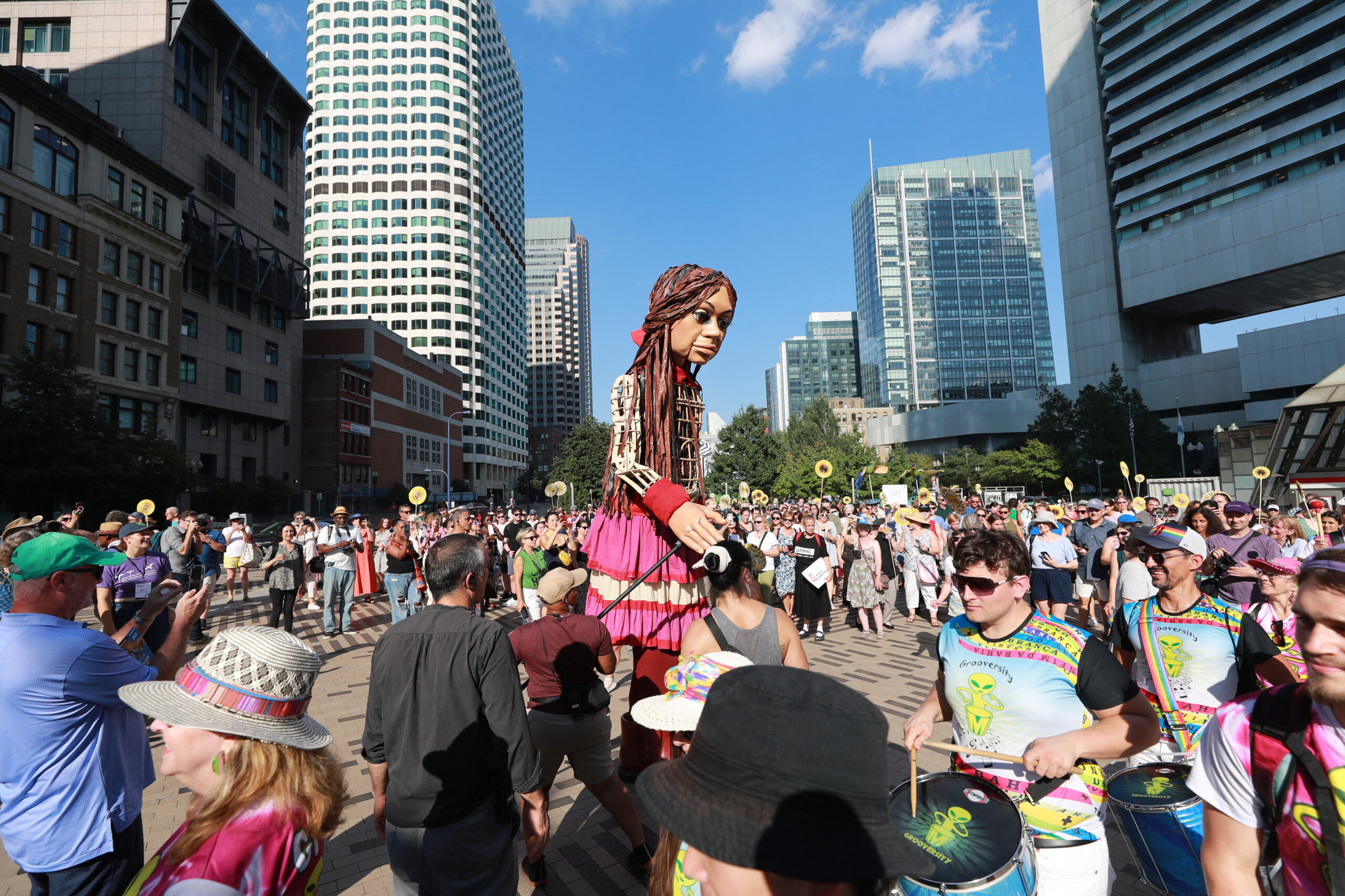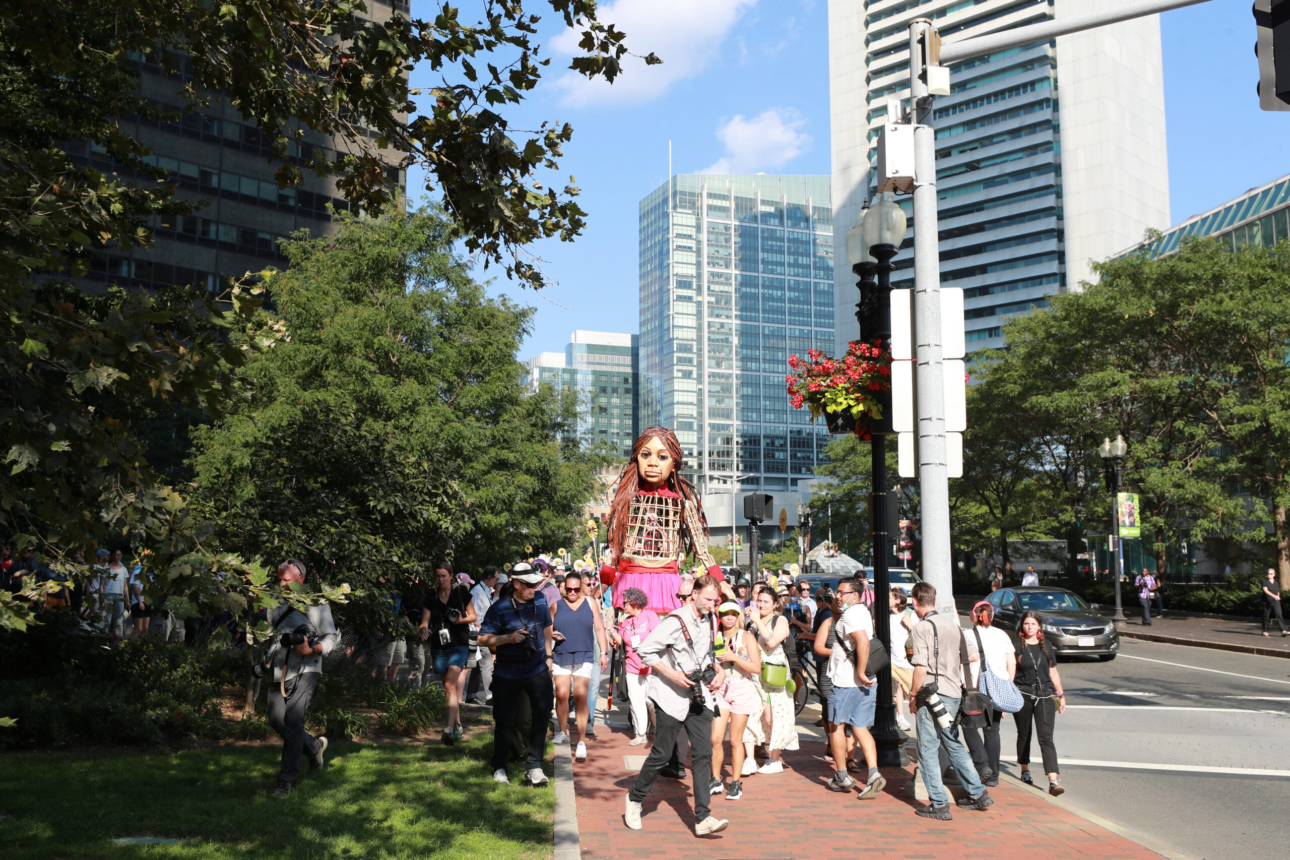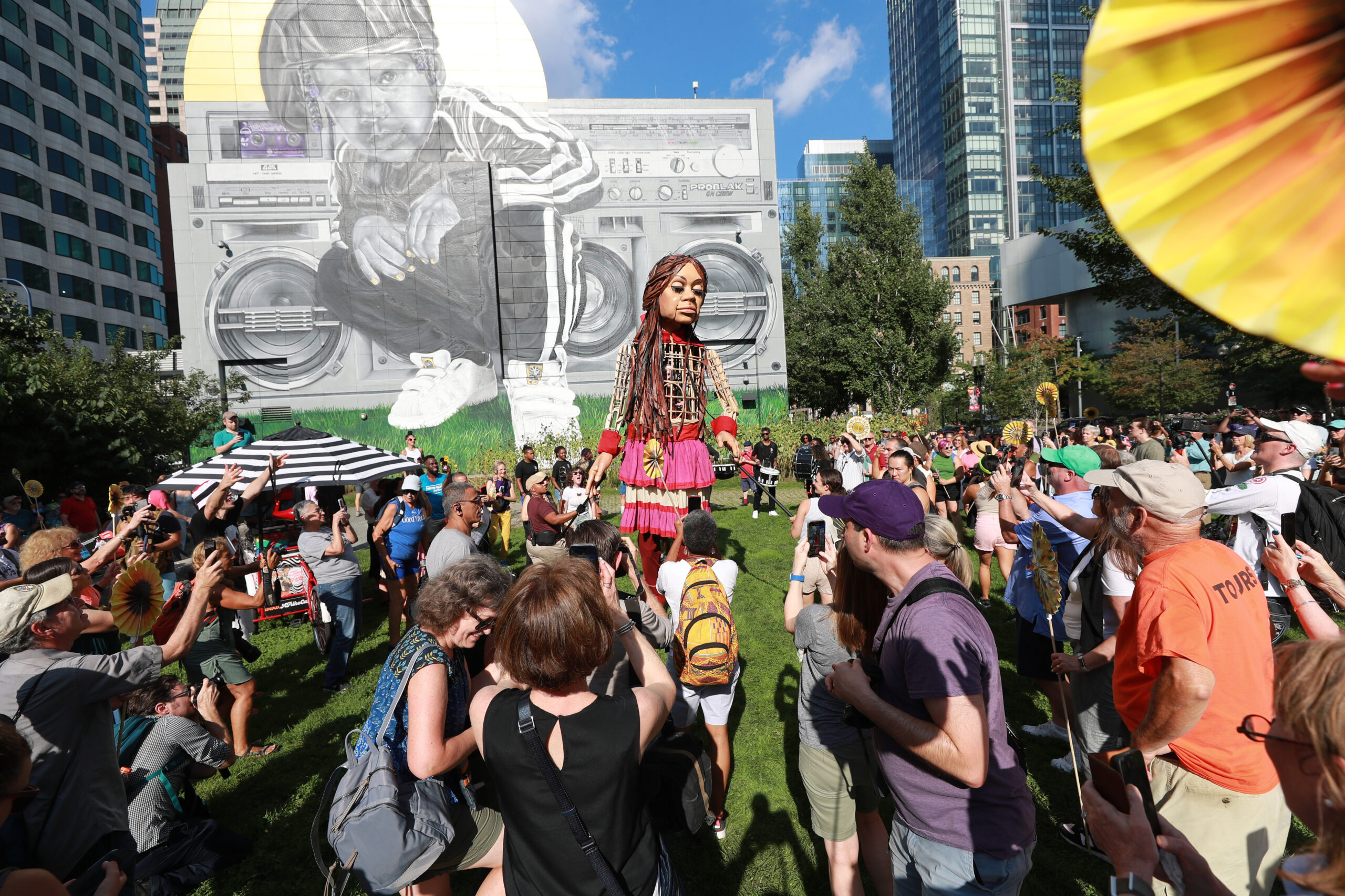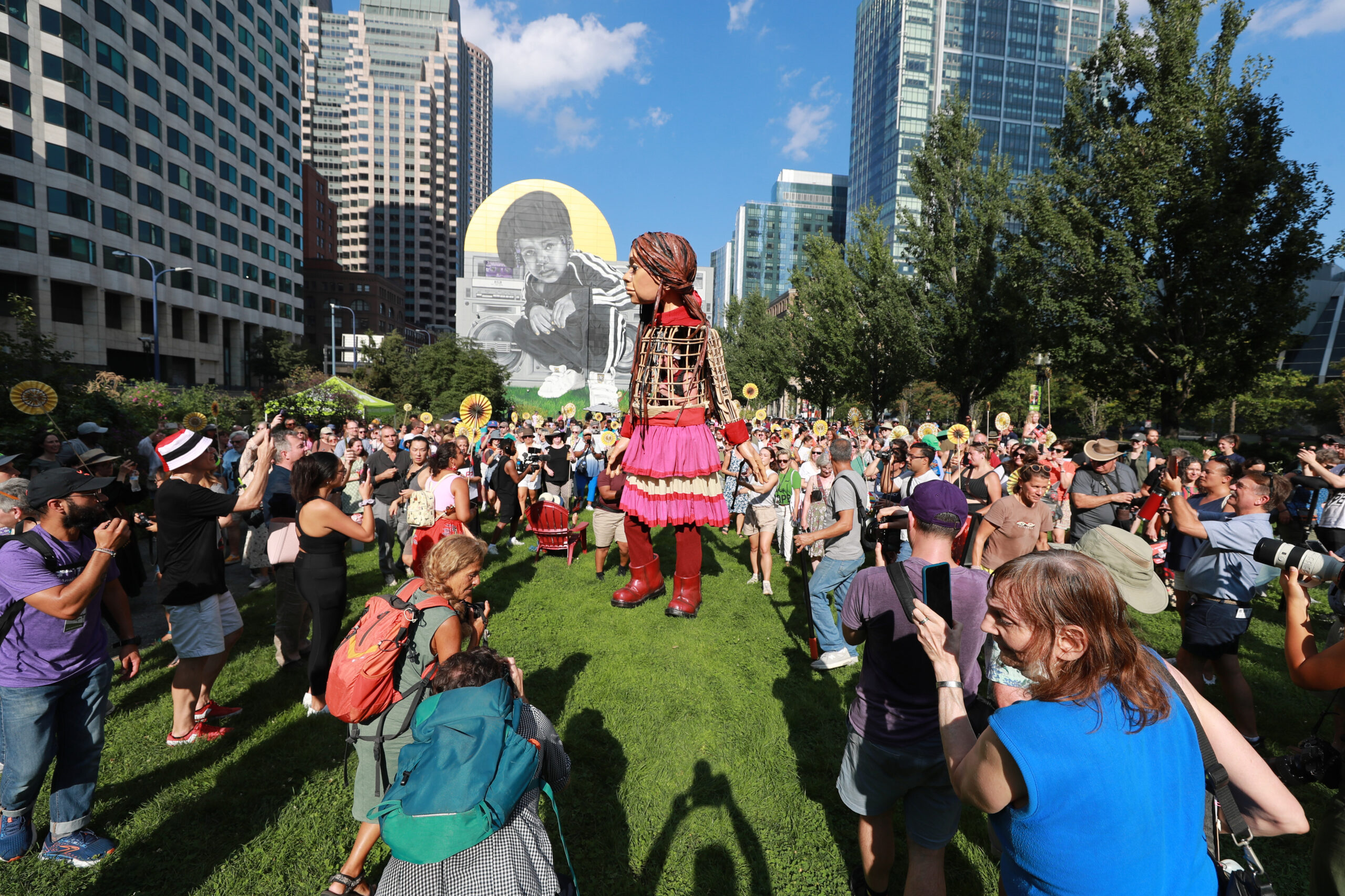 Here is our photo gallery from our event with Little Amal, which took place on September 7 across Rowes Wharf, Dewey Square, and Chinatown. Little Amal is the 12-foot-tall puppet of a 10-year-old Syrian refugee girl. She has been walking across the world to raise awareness for refugees.