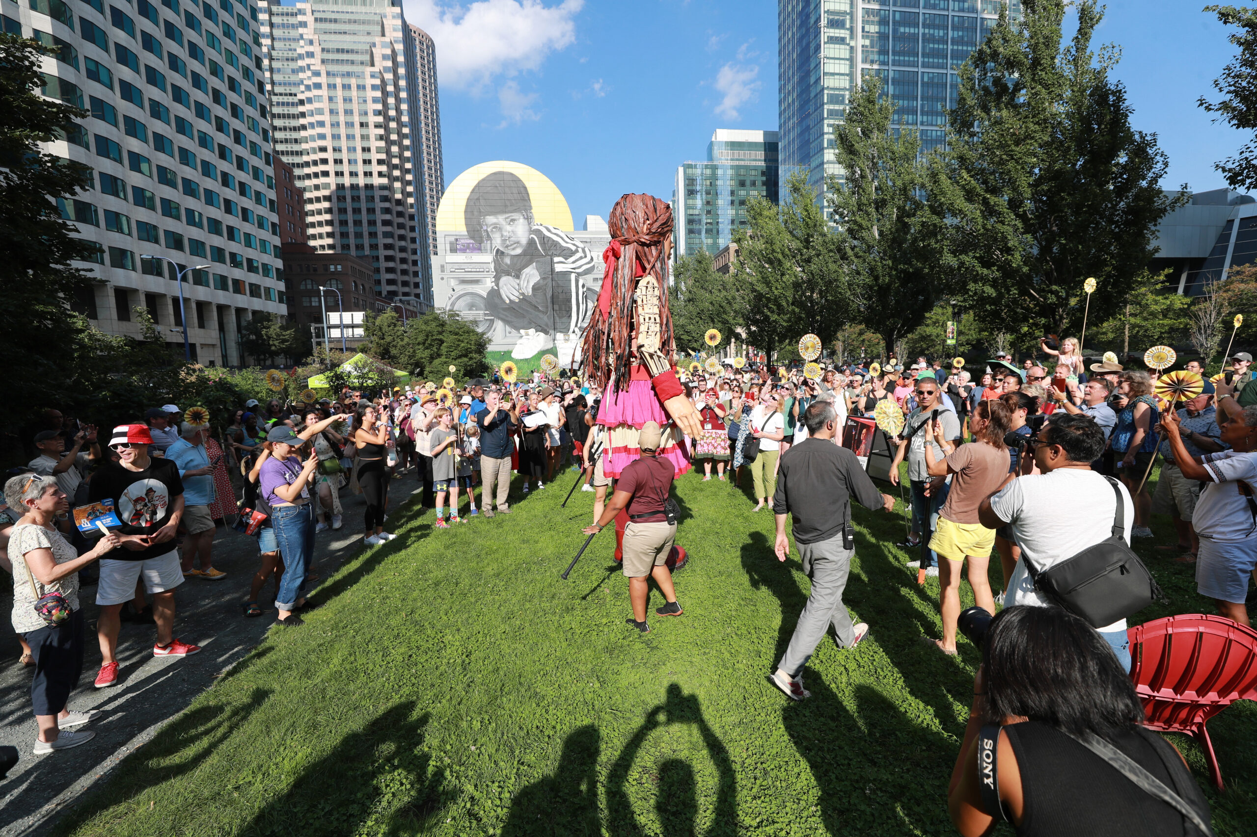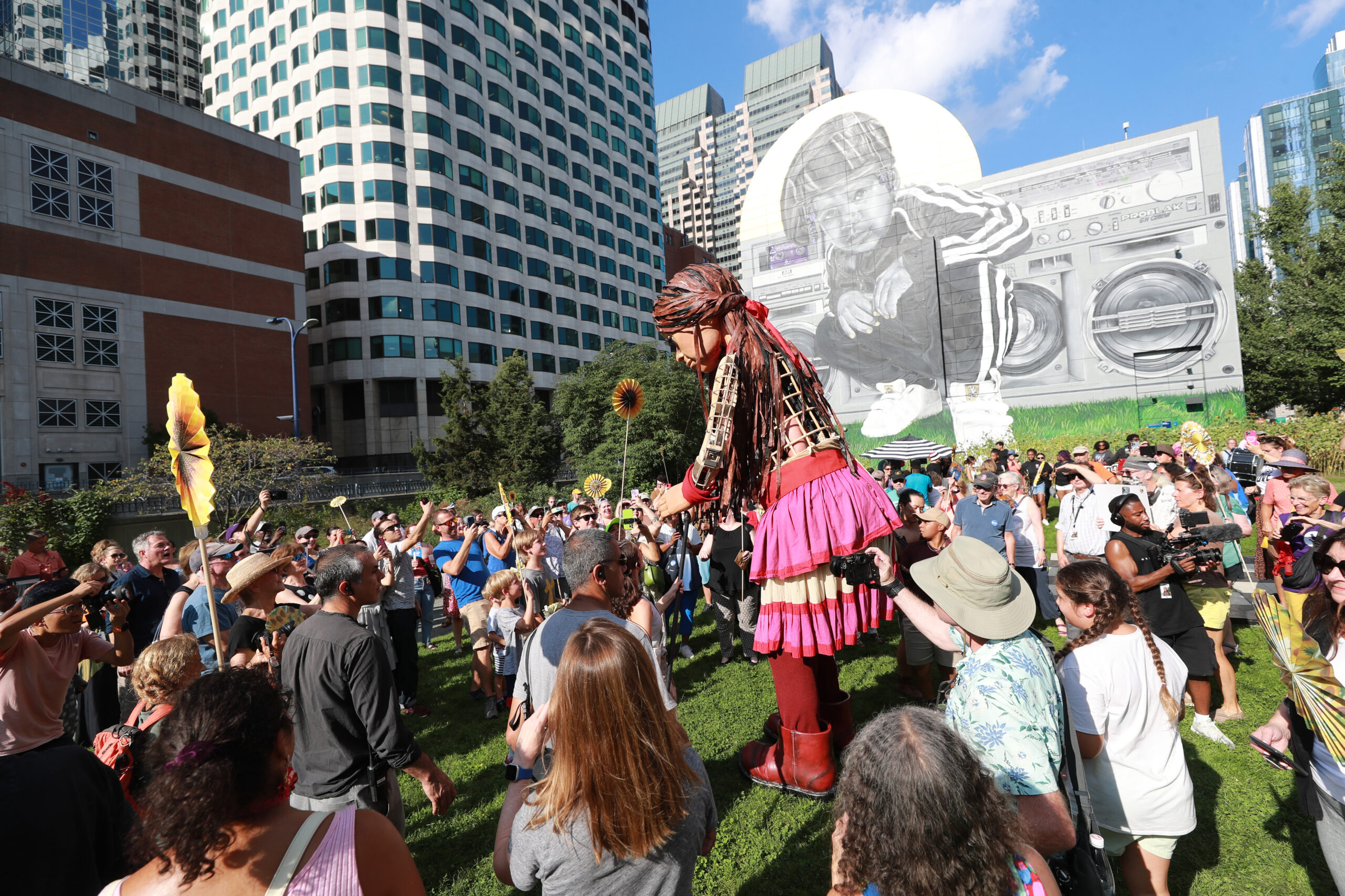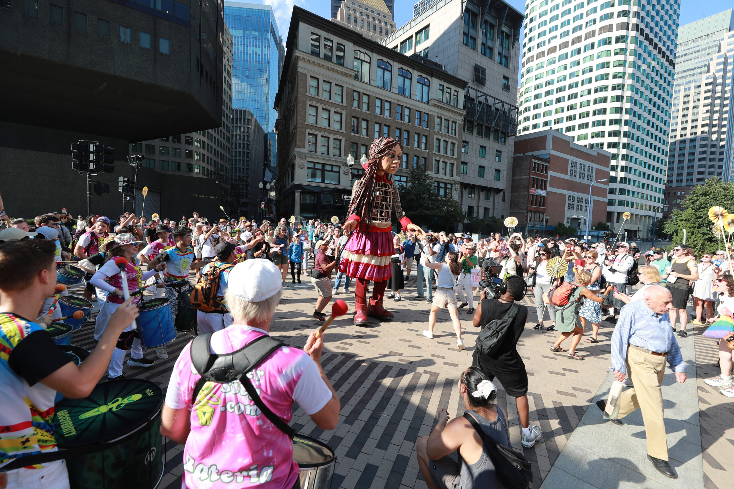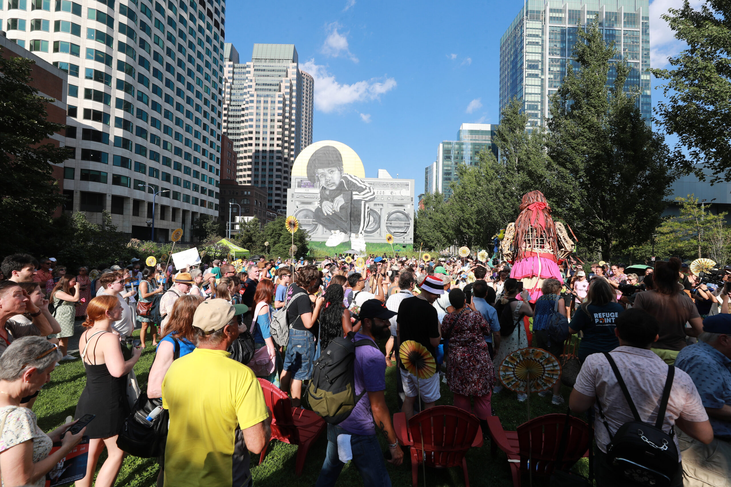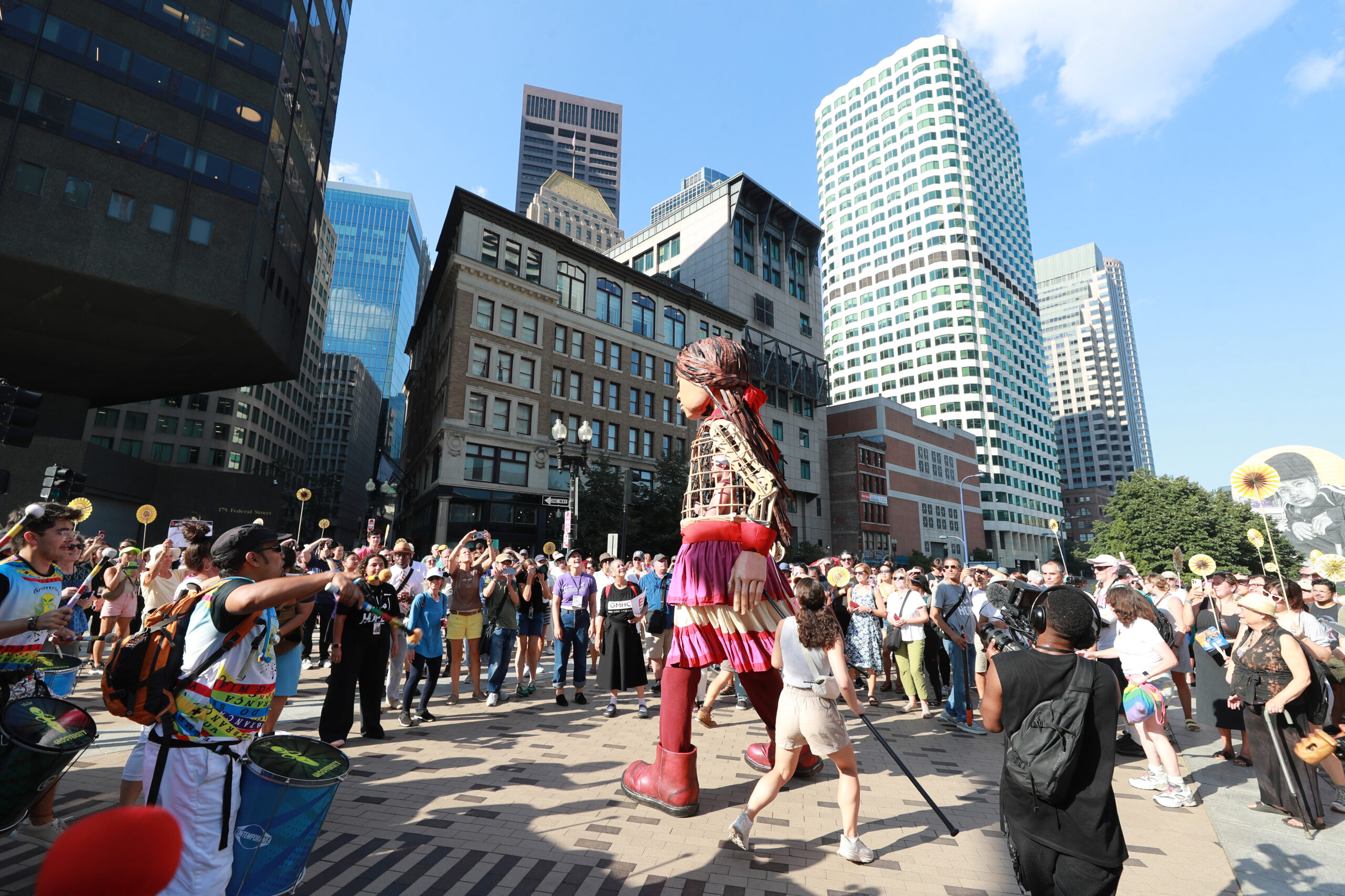 Here is our photo gallery from our event with Little Amal, which took place on September 7 across Rowes Wharf, Dewey Square, and Chinatown. Little Amal is the 12-foot-tall puppet of a 10-year-old Syrian refugee girl. She has been walking across the world to raise awareness for refugees.