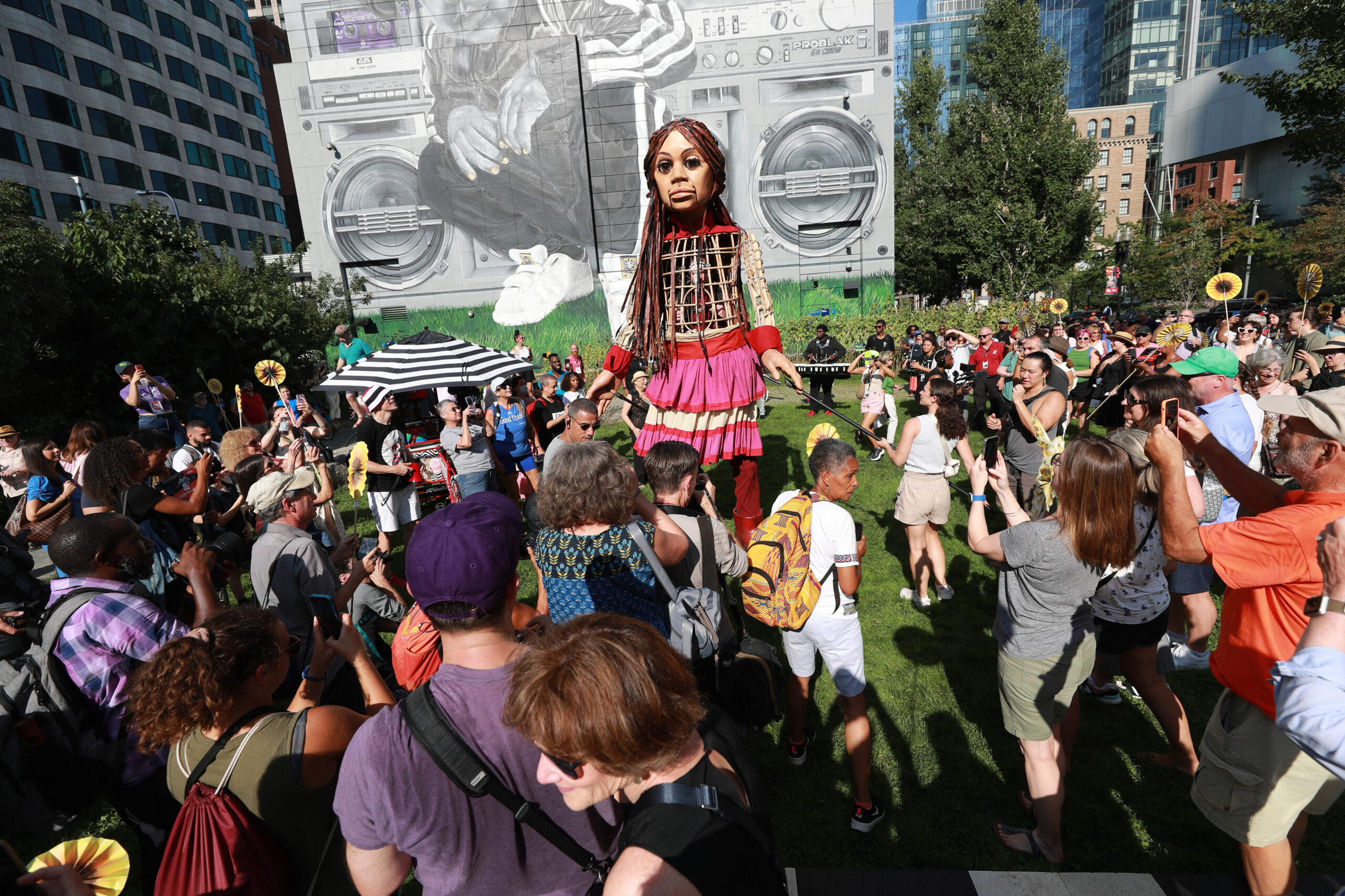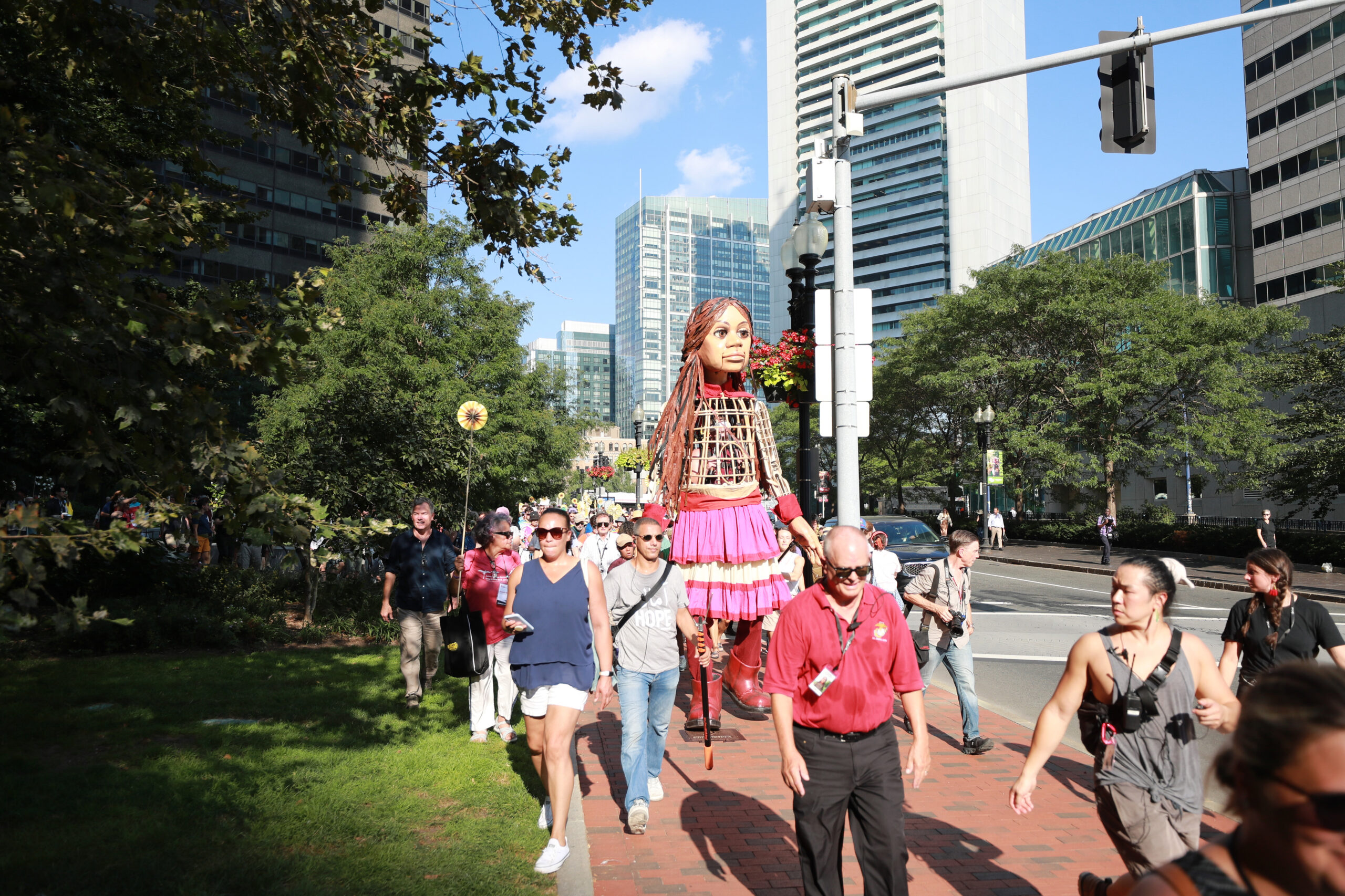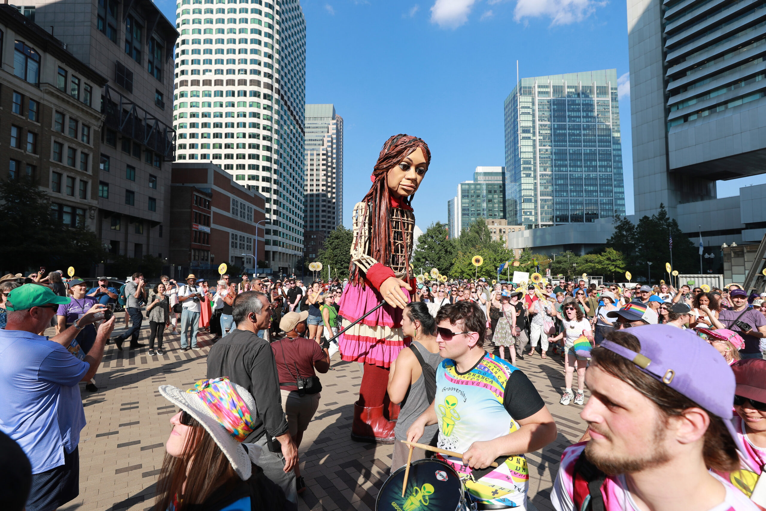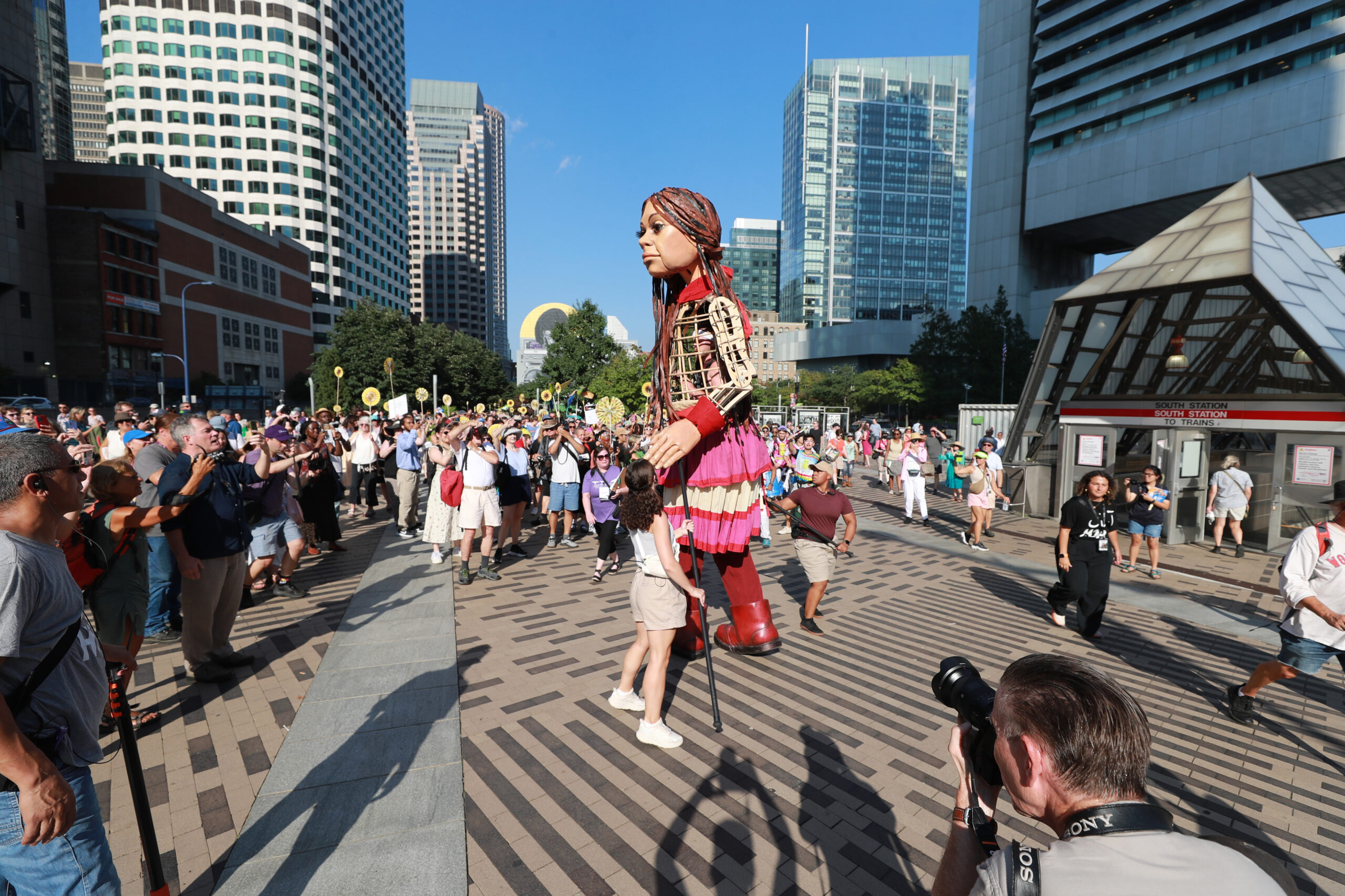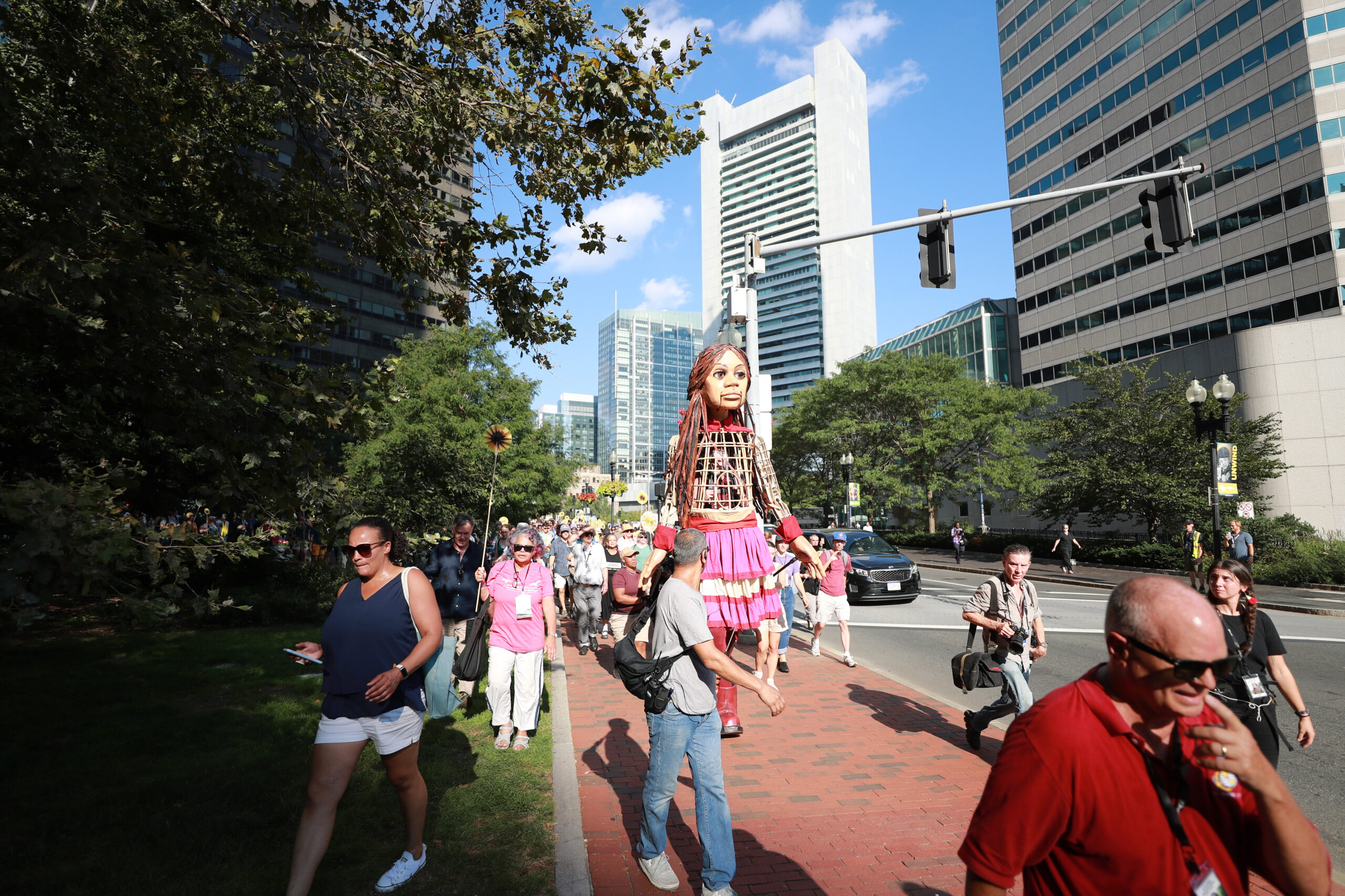 Here is our photo gallery from our event with Little Amal, which took place on September 7 across Rowes Wharf, Dewey Square, and Chinatown. Little Amal is the 12-foot-tall puppet of a 10-year-old Syrian refugee girl. She has been walking across the world to raise awareness for refugees.