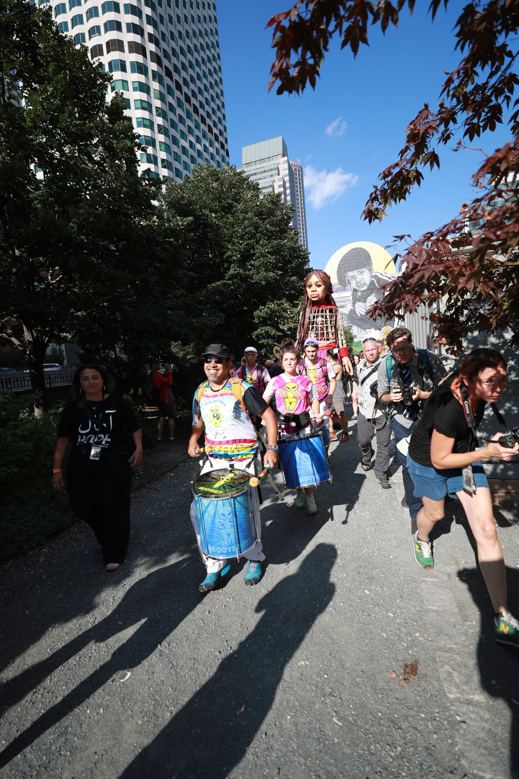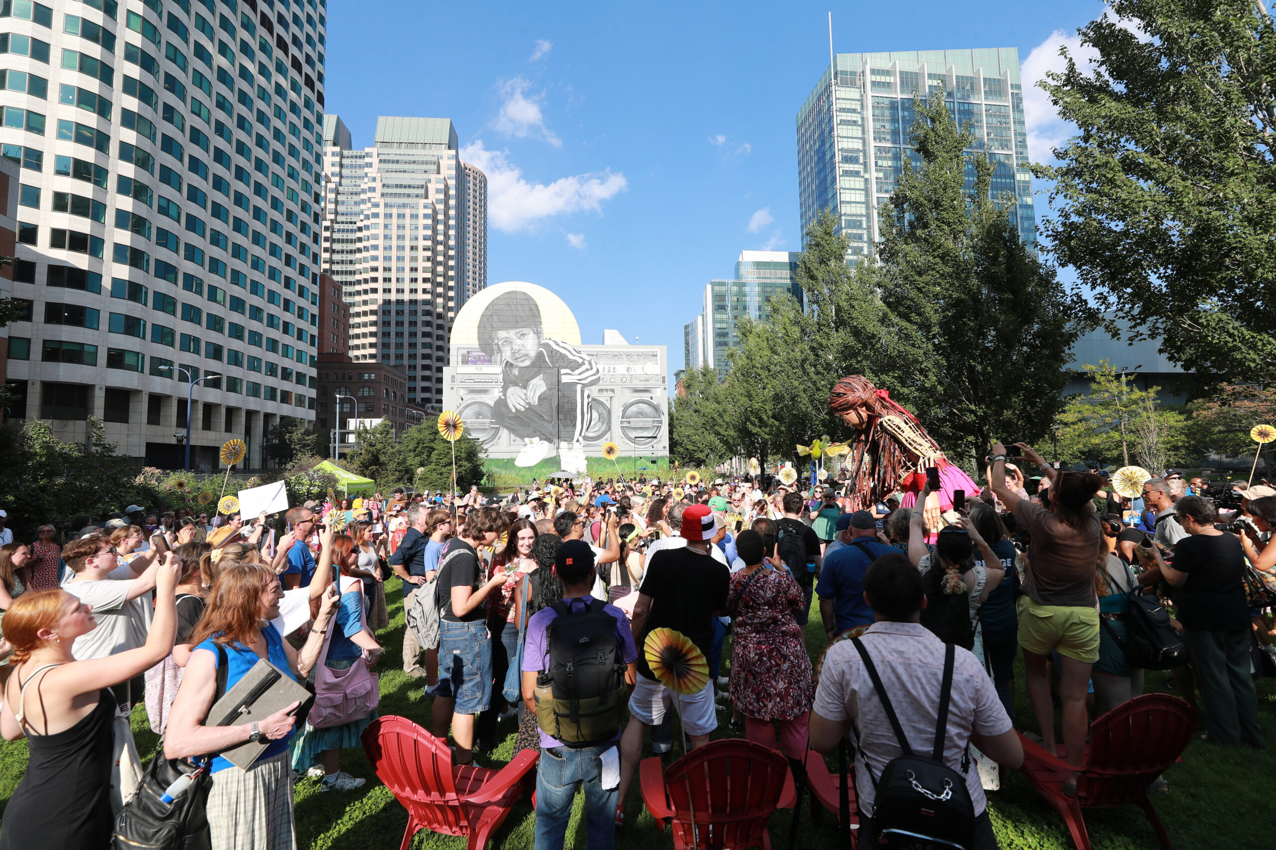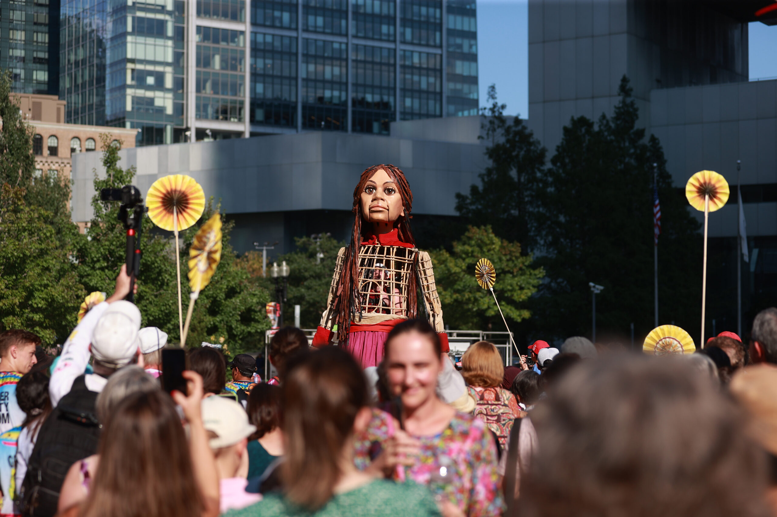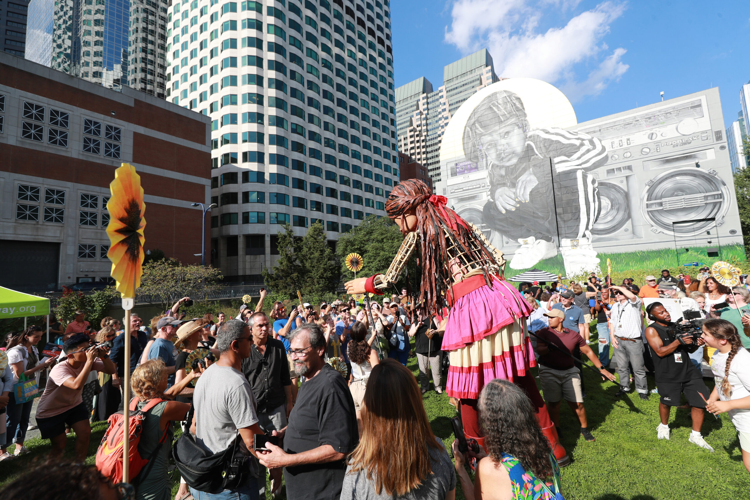 Here is our photo gallery from our event with Little Amal, which took place on September 7 across Rowes Wharf, Dewey Square, and Chinatown. Little Amal is the 12-foot-tall puppet of a 10-year-old Syrian refugee girl. She has been walking across the world to raise awareness for refugees.