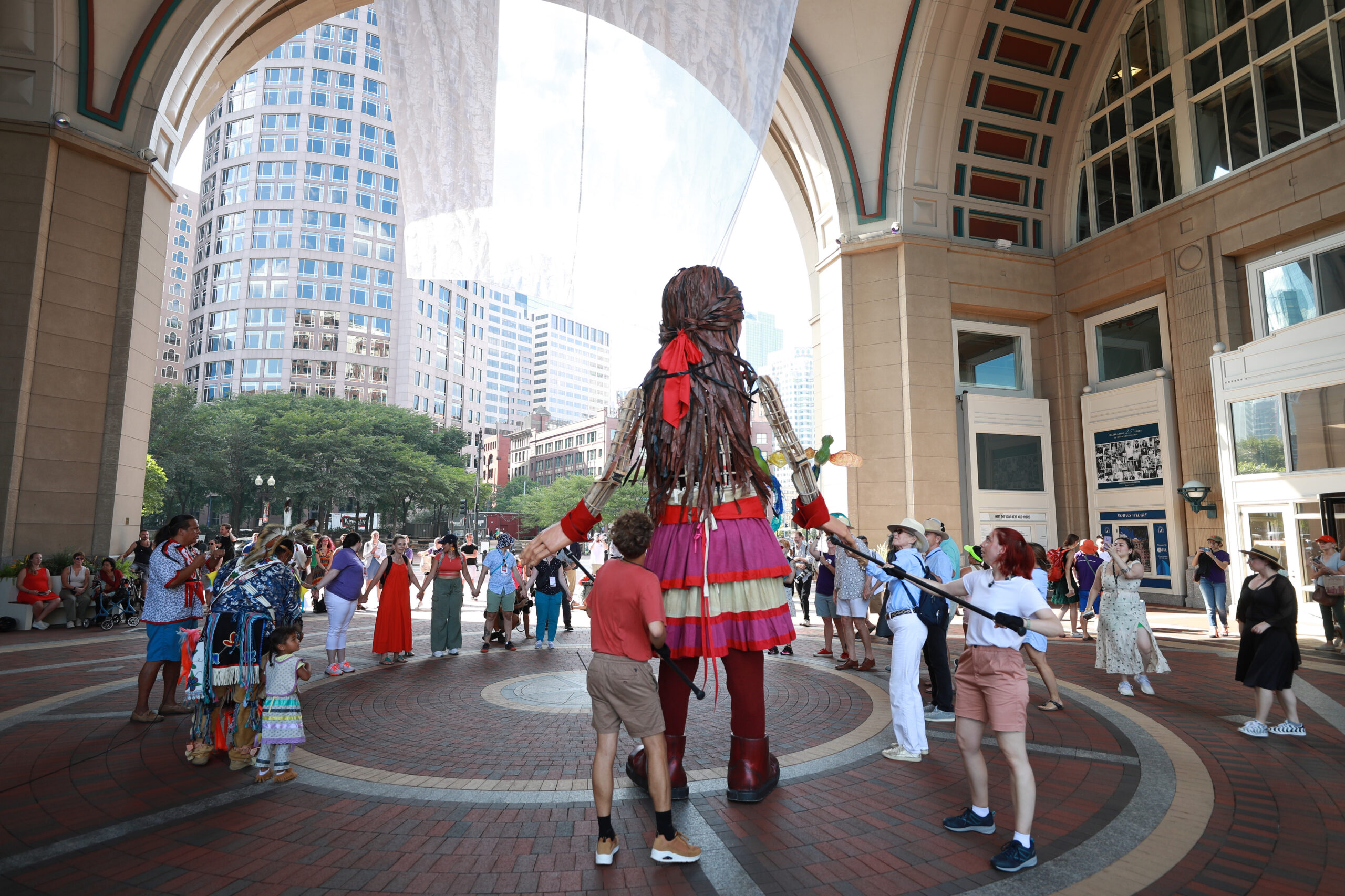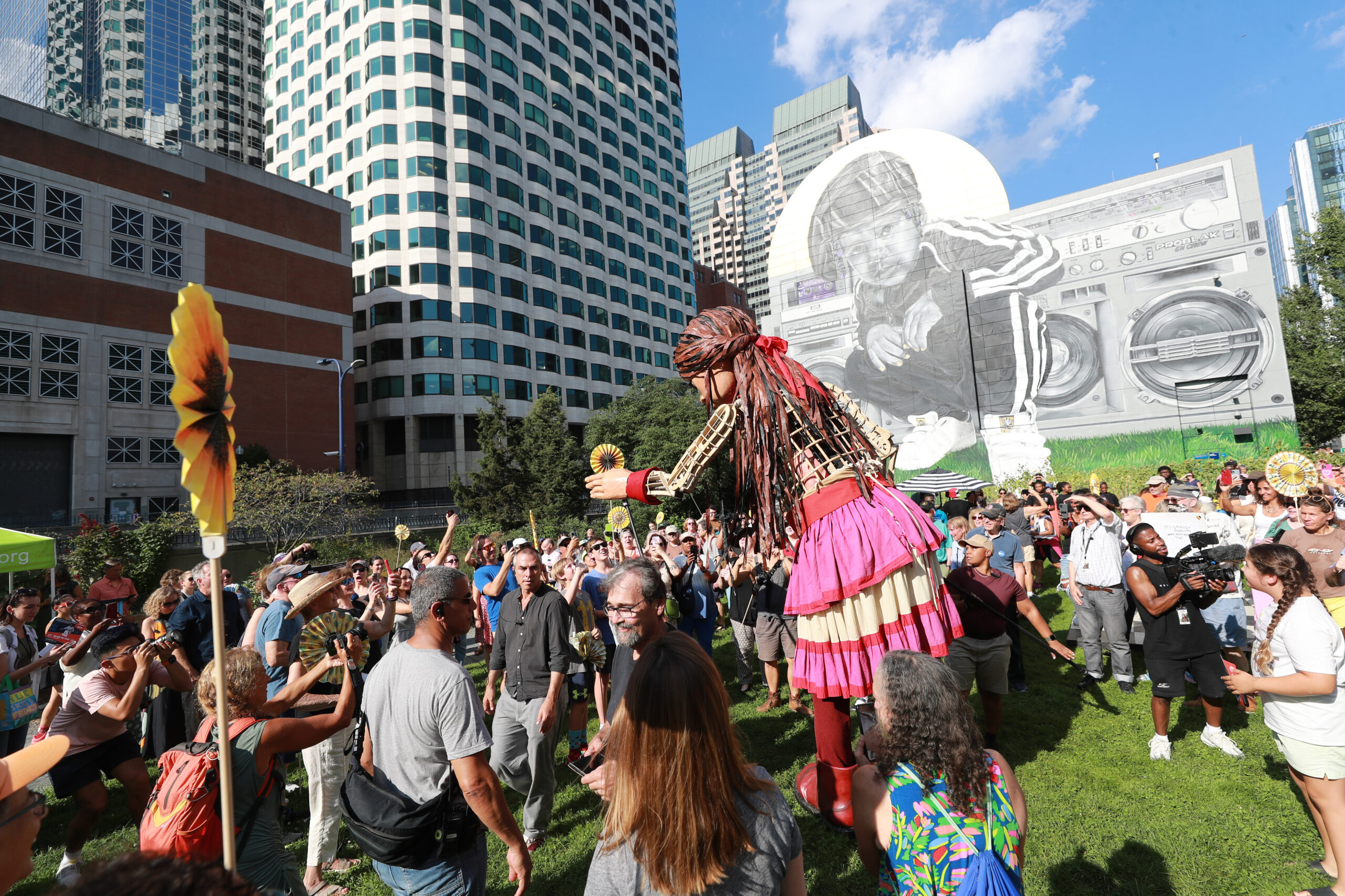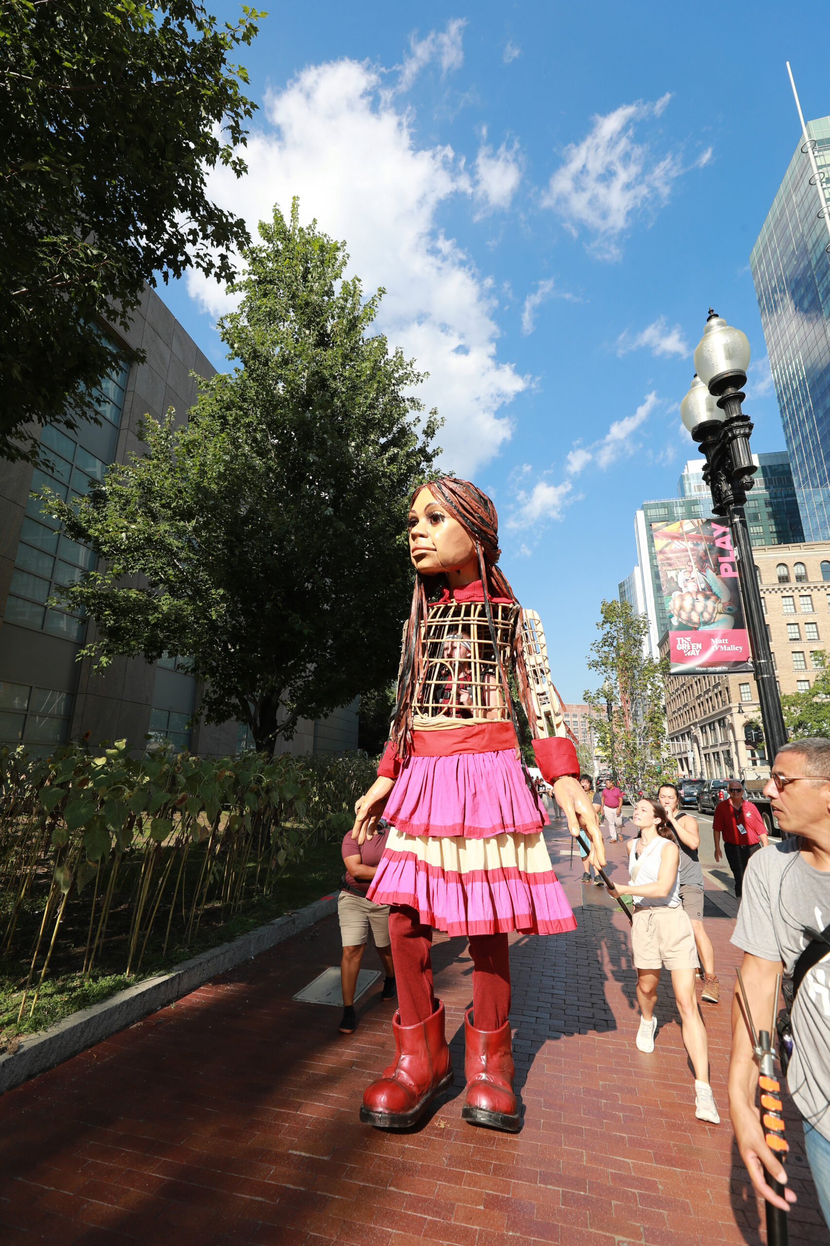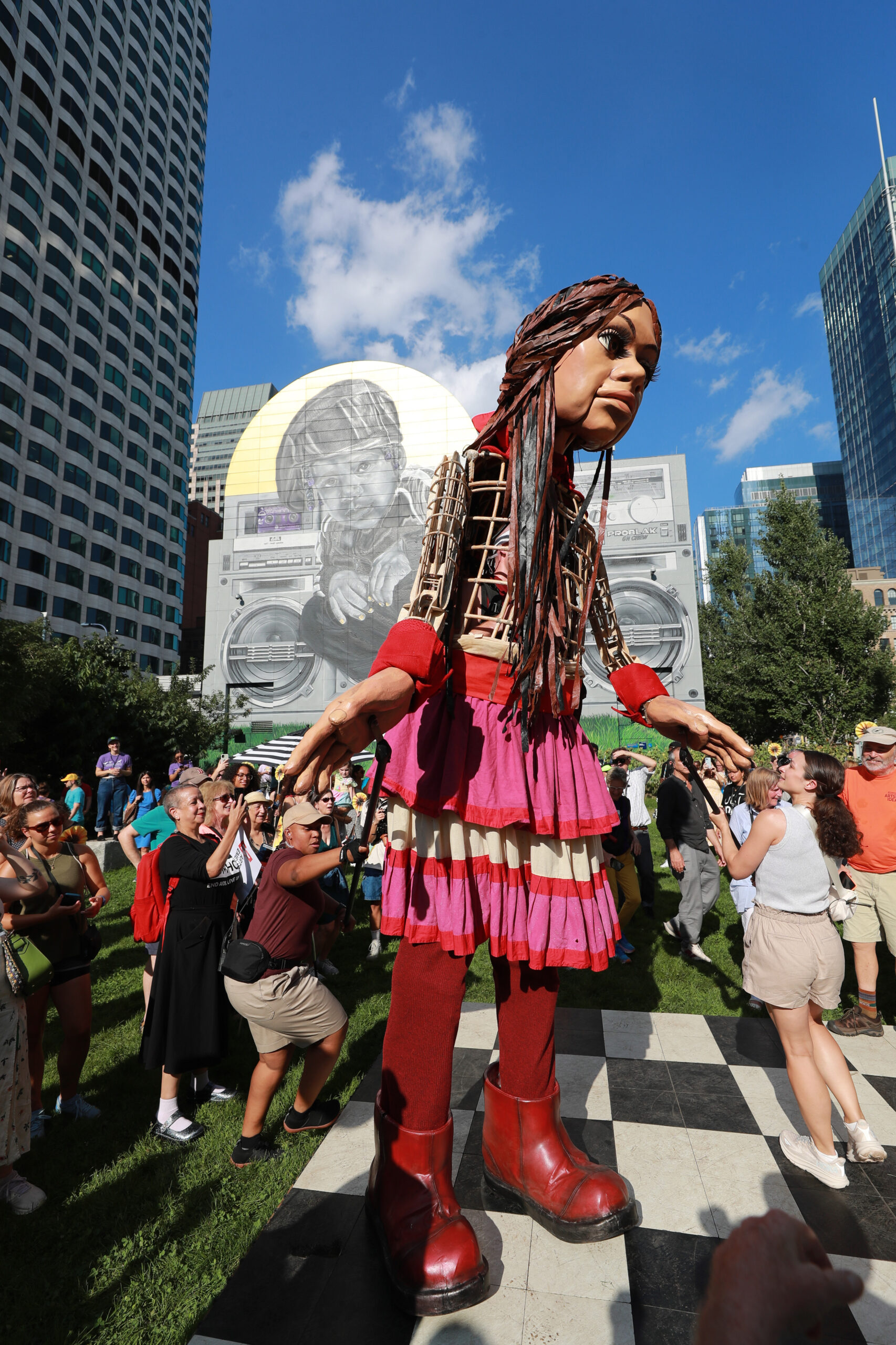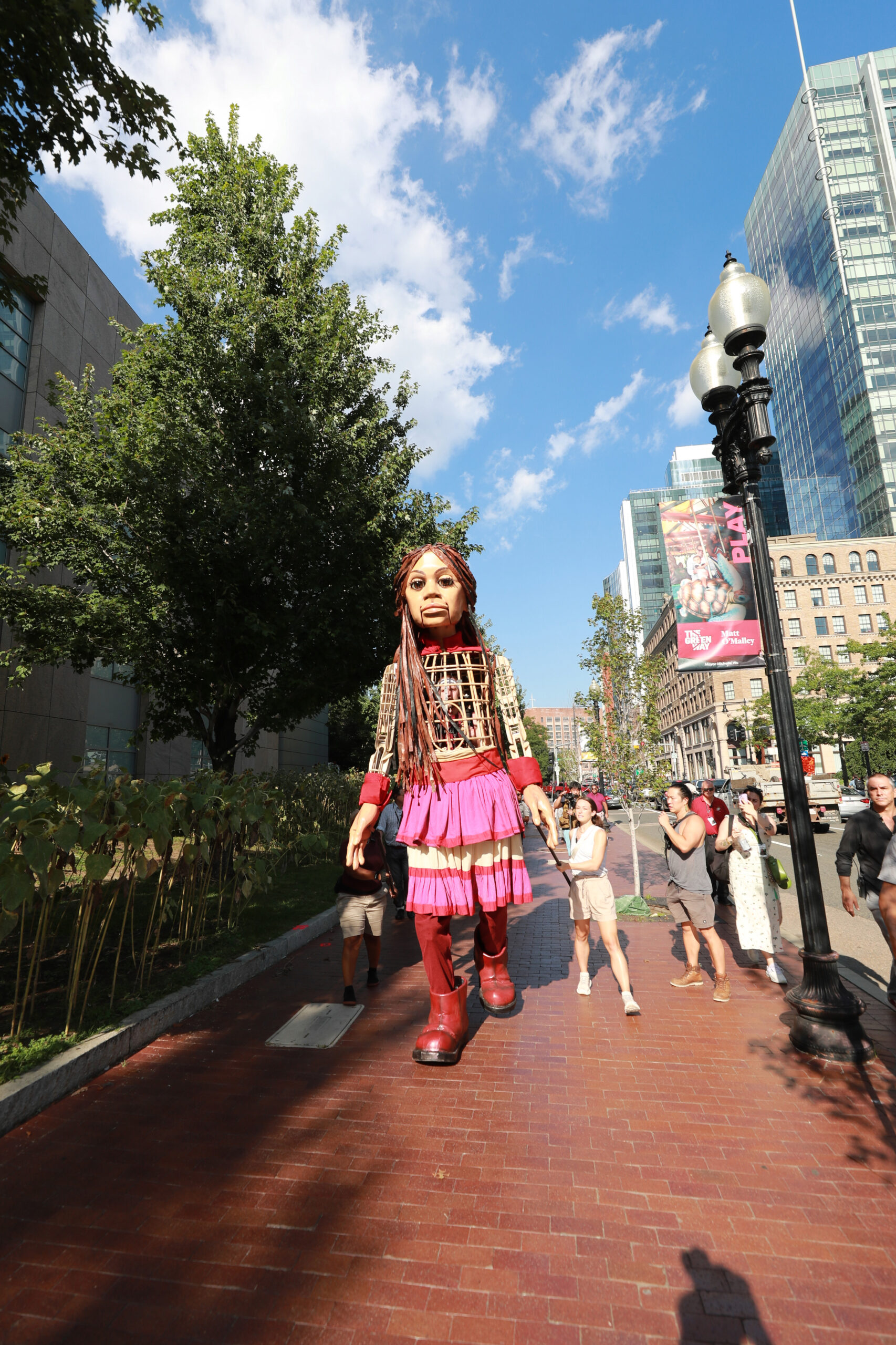 Here is our photo gallery from our event with Little Amal, which took place on September 7 across Rowes Wharf, Dewey Square, and Chinatown. Little Amal is the 12-foot-tall puppet of a 10-year-old Syrian refugee girl. She has been walking across the world to raise awareness for refugees.