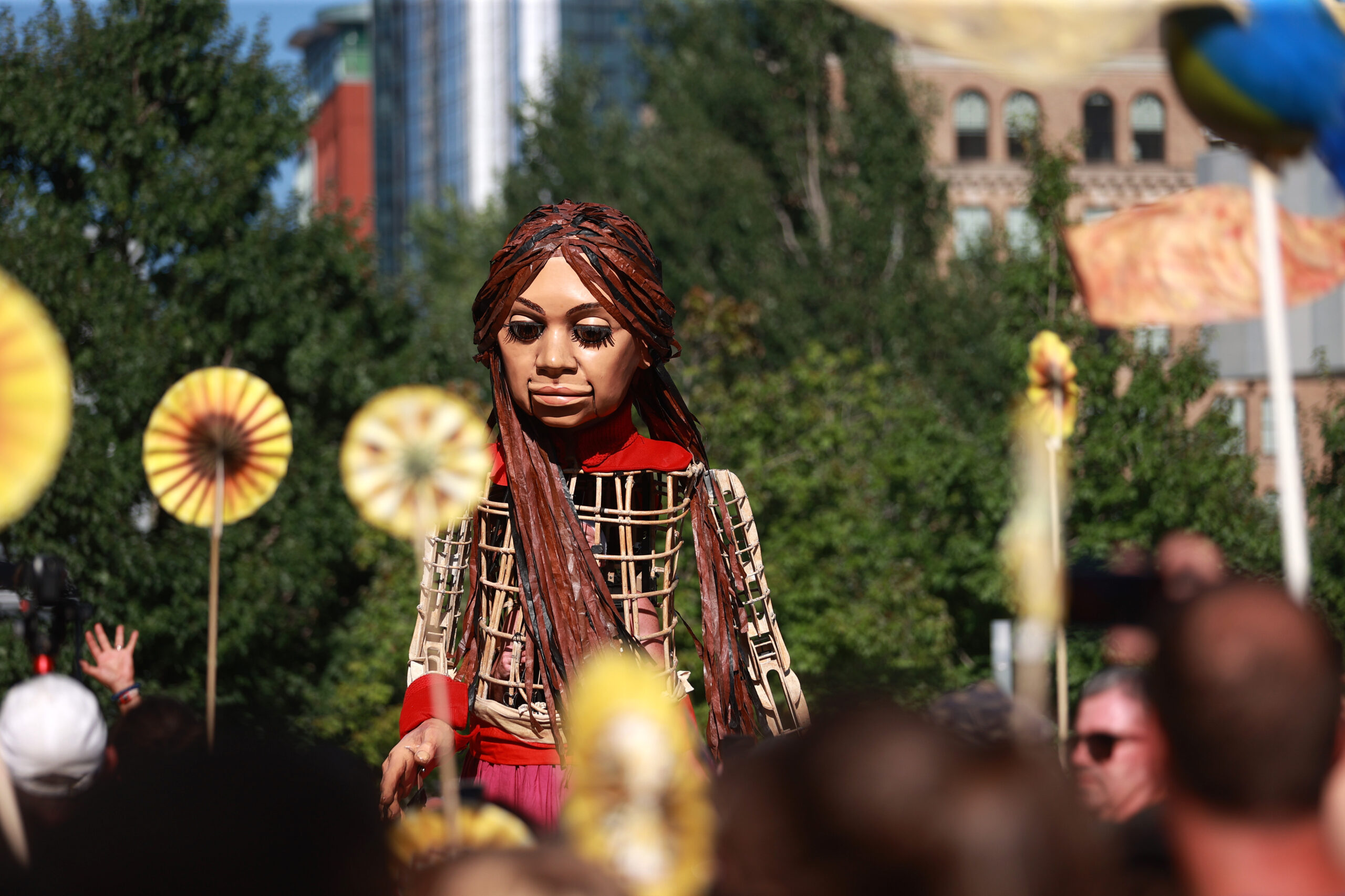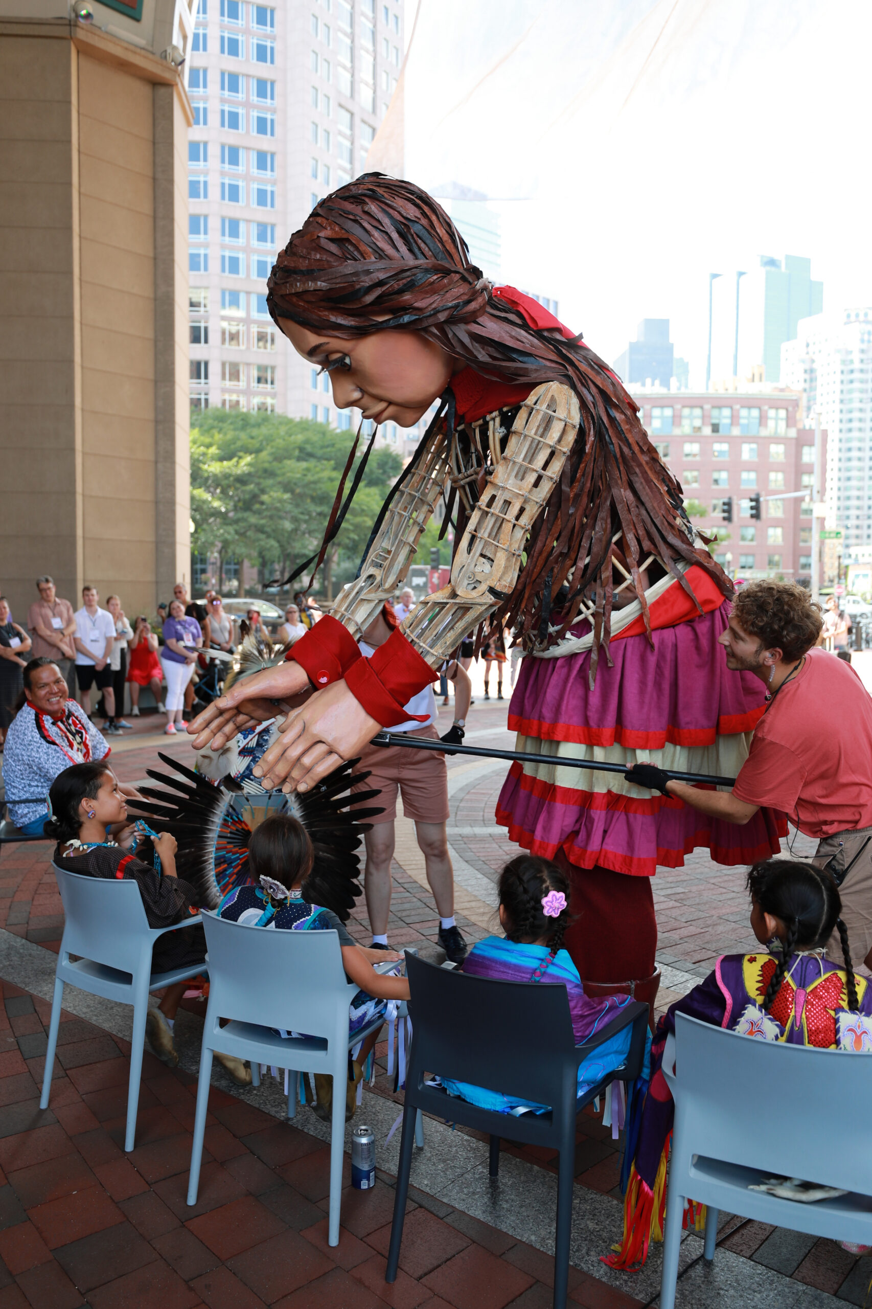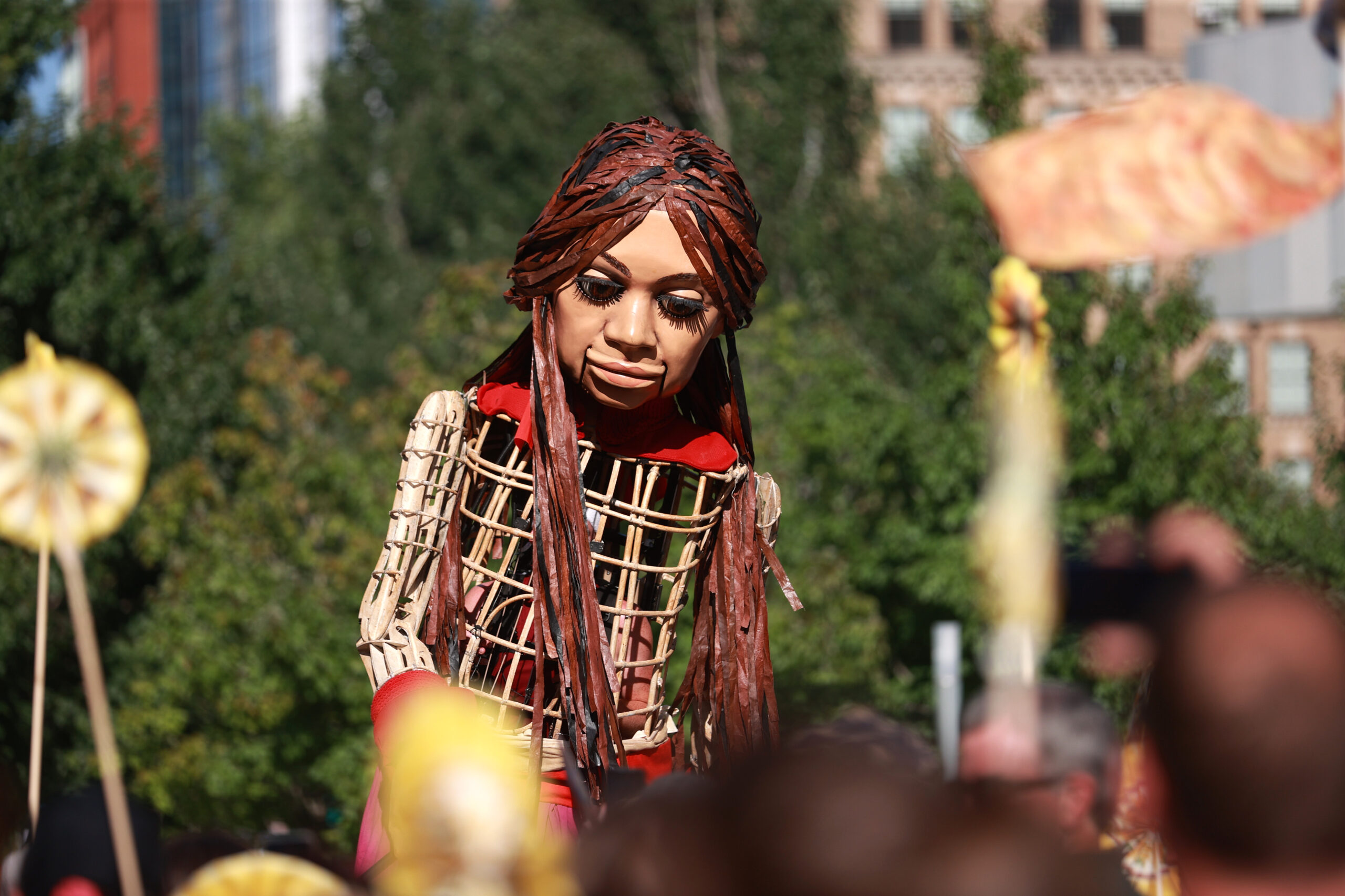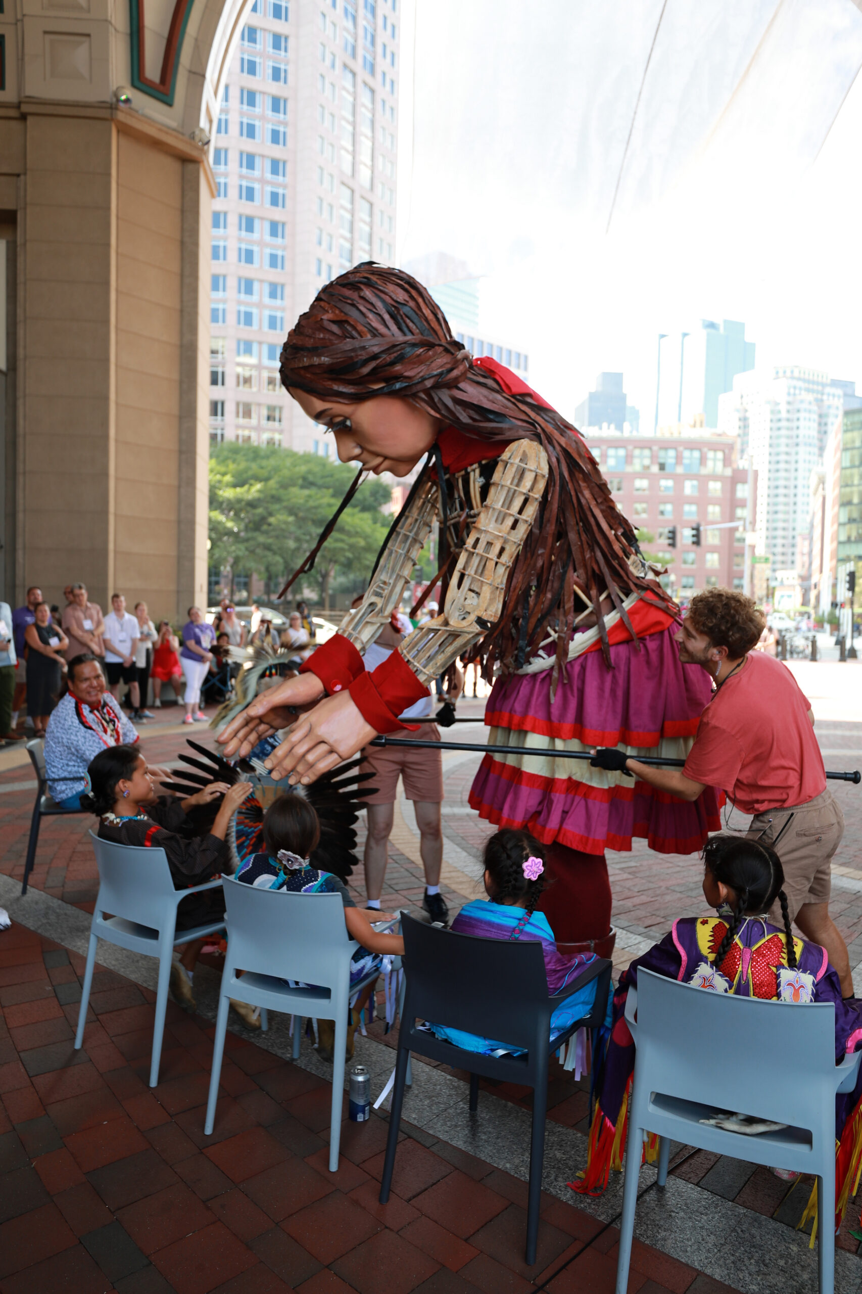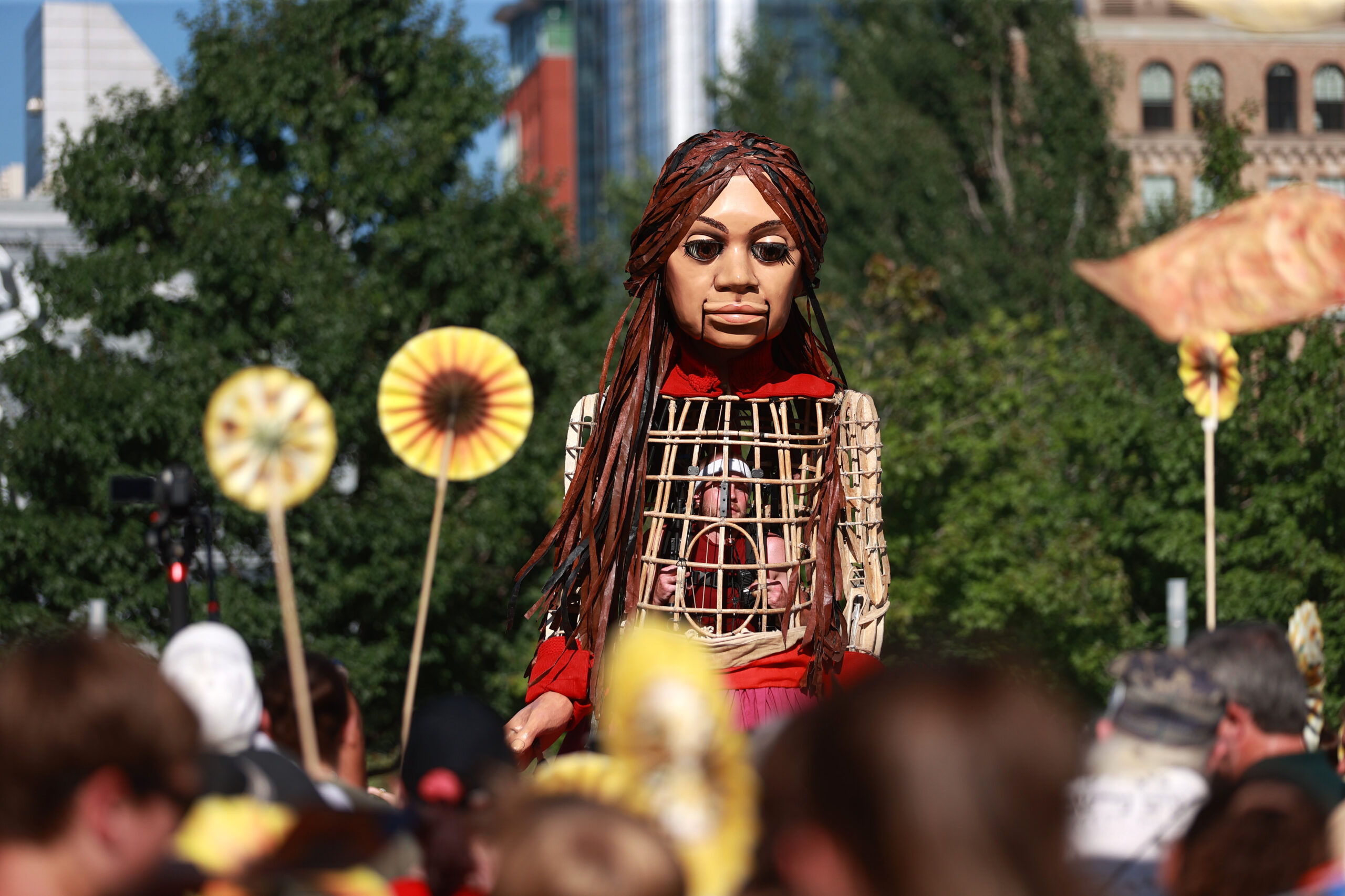 Here is our photo gallery from our event with Little Amal, which took place on September 7 across Rowes Wharf, Dewey Square, and Chinatown. Little Amal is the 12-foot-tall puppet of a 10-year-old Syrian refugee girl. She has been walking across the world to raise awareness for refugees.