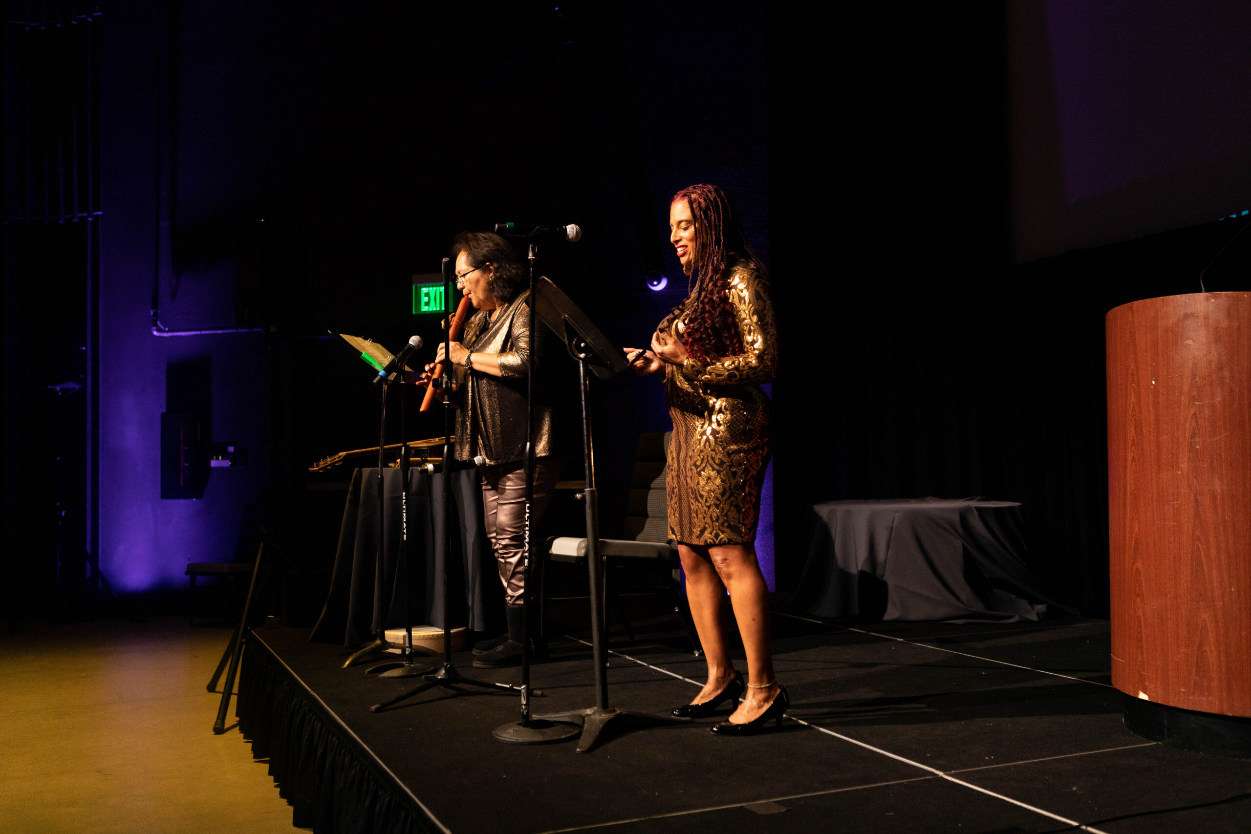 - Foreground, Rebecca Frank Oeser, General Manager, ArtsEmerson and Peggy Ings (Emerson’s VP of Government & Community Relations)