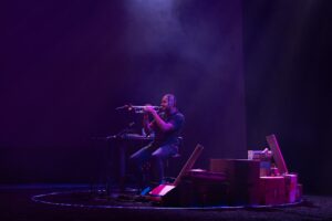 From February 20-22, ArtsEmerson will welcome Ahamefule J. Oluo for their incredible solo performance: The Things Around Us. Part memoir, part music, and part stand-up comedy, the piece follows Oluo as he constructs a full musical score live onstage. Looping trumpet lines, layering percussion from found objects, and weaving humor through deeply personal stories, usher on the third installment of this autobiographical trilogy. Audiences can expect an evening that shifts fluidly from laughter to vulnerability, all while showcasing Oluo’s unmatched musicianship.