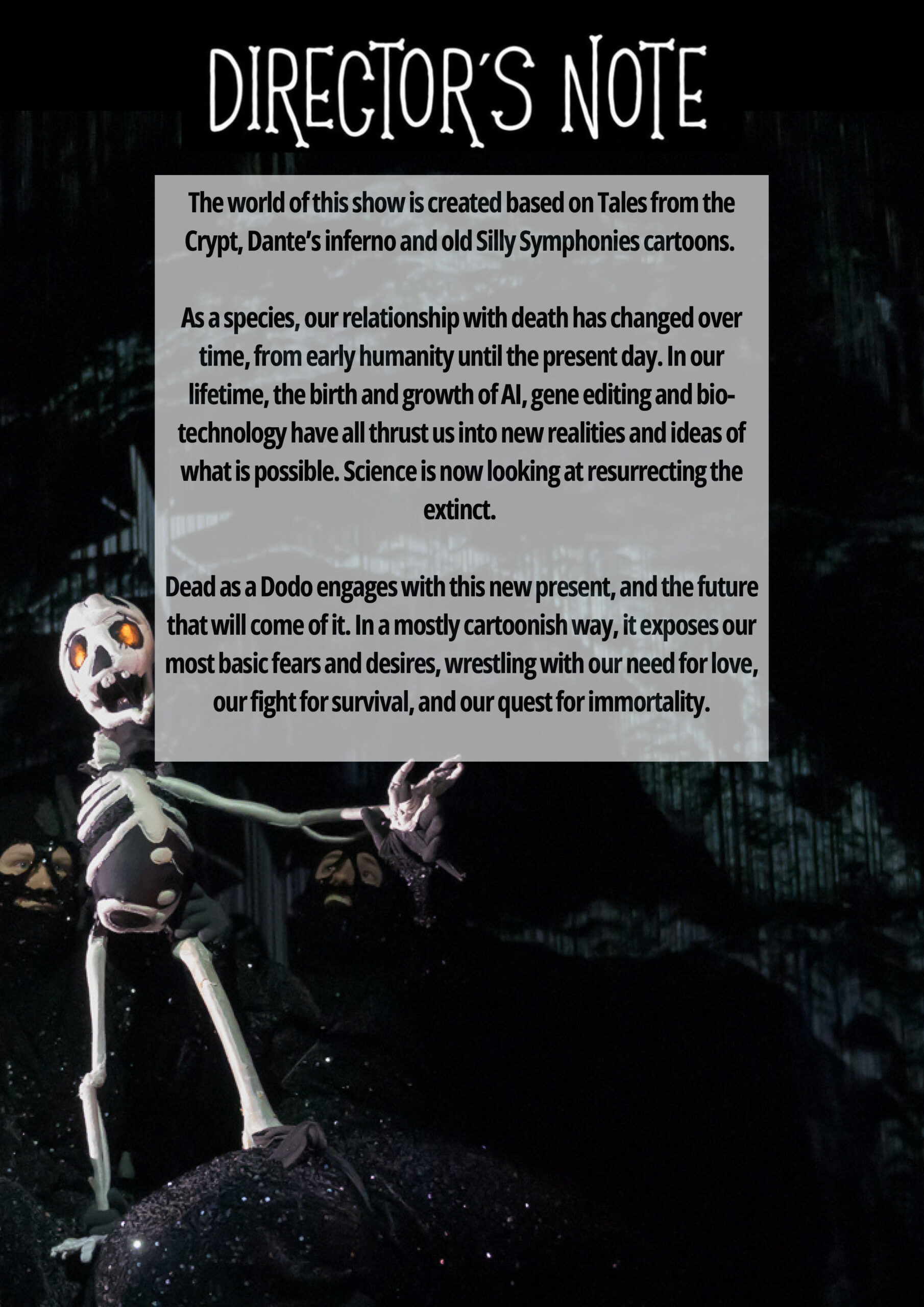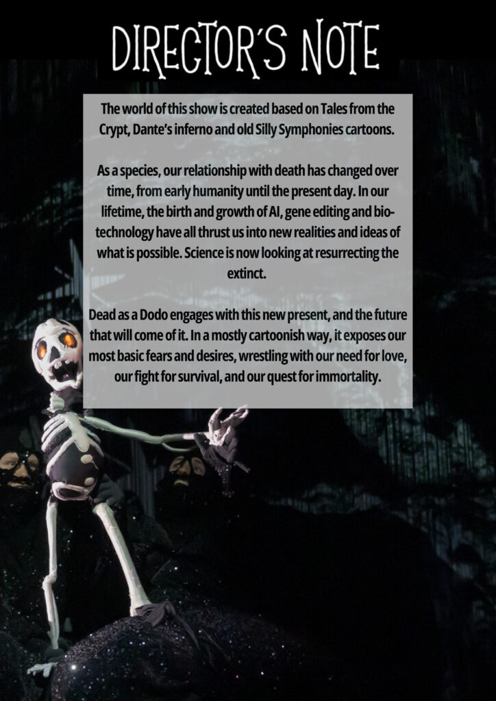 Every show we present is different, but it’s safe to say I’ve never started a program note saying anything like this: you are about to enjoy a musical odyssey into the heart of friendship (and the underworld) with your tour guides, an extinct dodo and a skeleton boy.