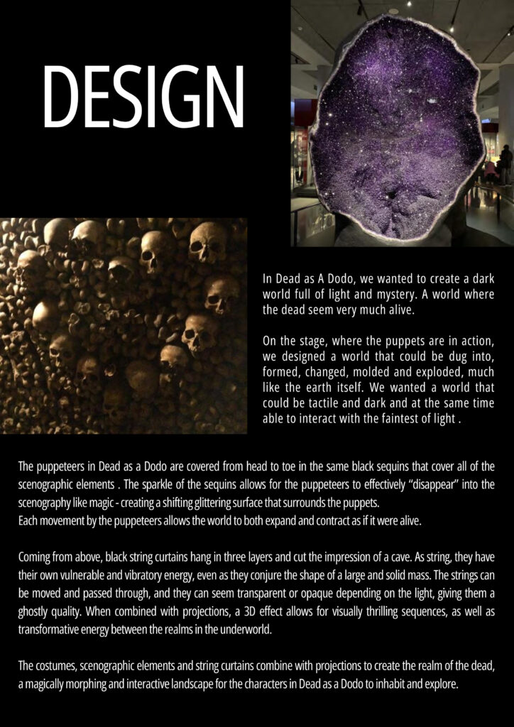 The minds behind this wondrous adventure that you’re here to see is Wakka Wakka, an internationally touring theatre company that combines physical performance, puppetry, masks, and original music to explore contemporary global themes through visually arresting, often surreal storytelling. When we asked them why they were excited to bring this show to Boston, they replied, “because it’s a city full of people that love history, quirky forward-thinking ideas, and science; it’s the perfect audience for an evening of chaos, feathers, and extinct species.” We happily agree with this sentiment.